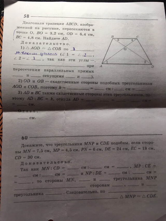 3)... откуда AD= BC*k = 4,8*2см = 9,6см