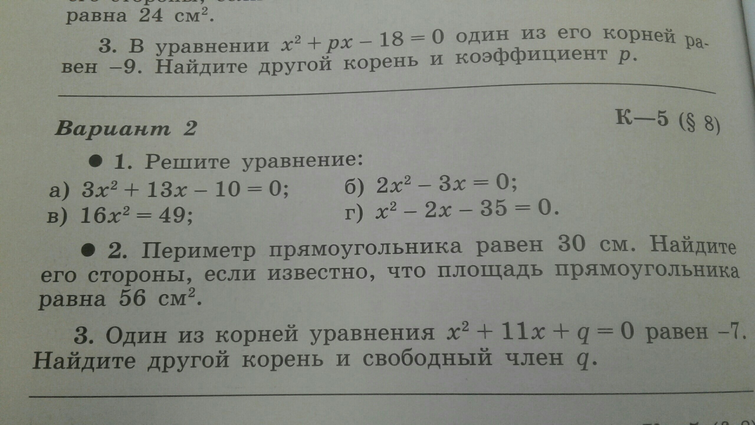 х₁ = ------------ = ----------- = -16/-2 = 8 это одна сторона