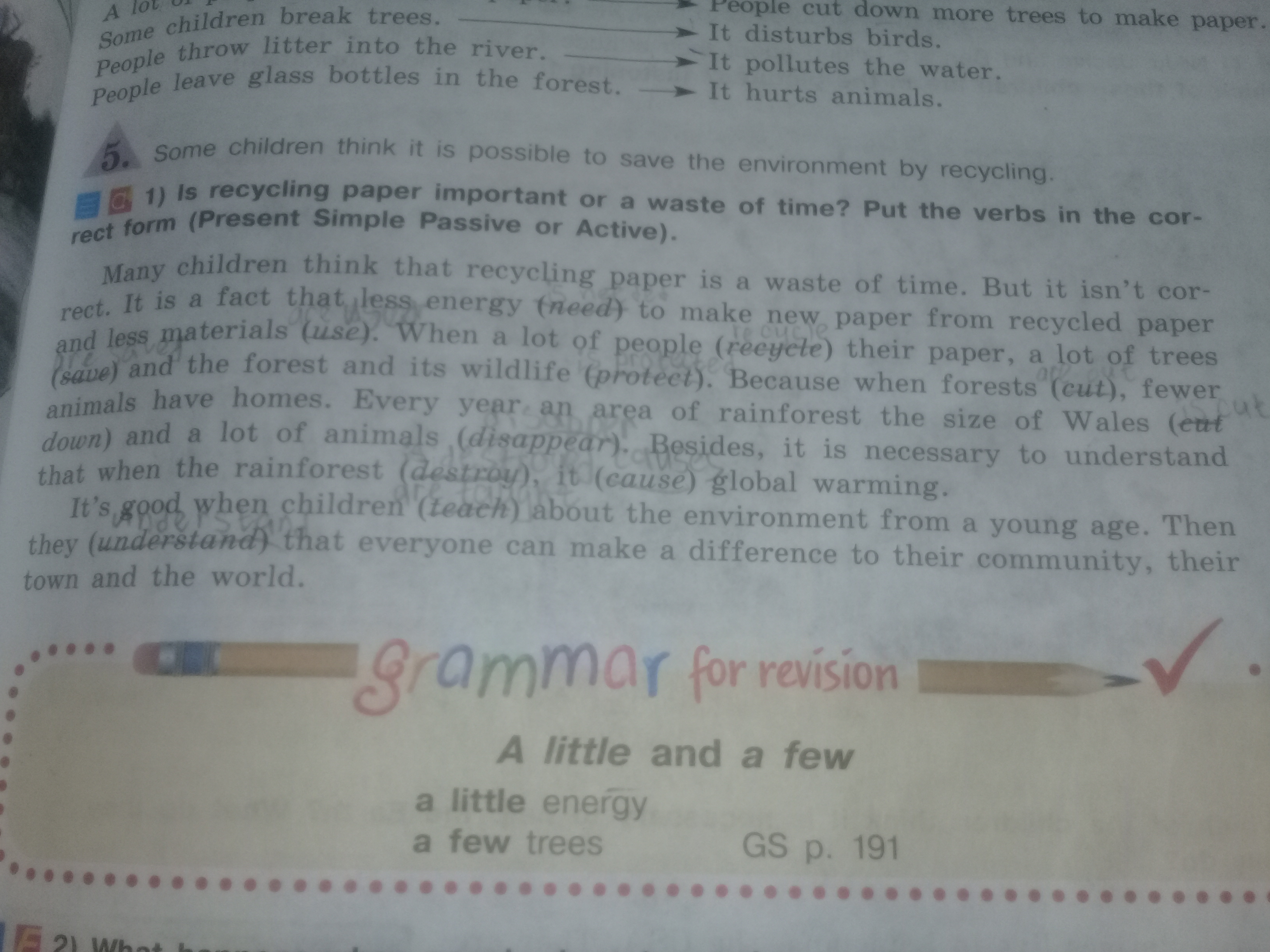 Many children wrongly think that recycling paper is a waste of time. However, less energy and less materials are needed. Further more, it helps to save a lot of trees and not deprive animals of their homes. It is necessary to understand that the more rainforests we district, the more the threat of global warming.