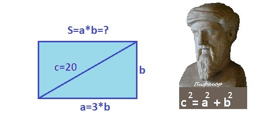 c² = (3b)² + b² = 20² = 400 - по т. Пифагора