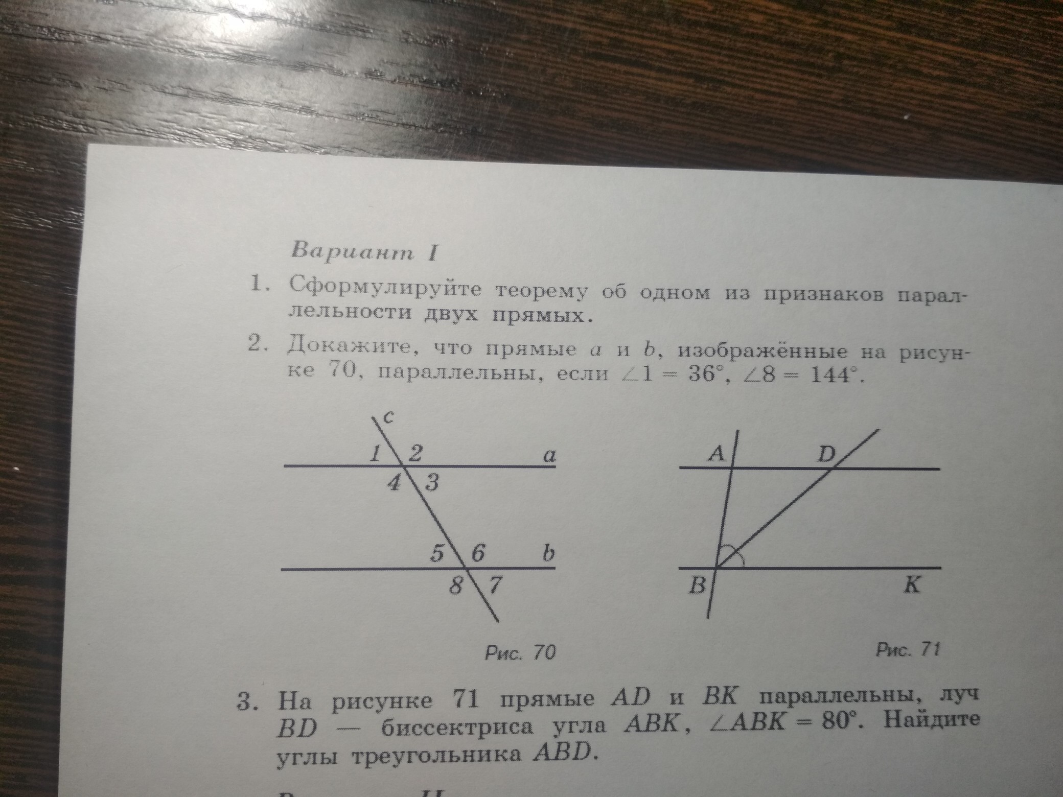 1) Если при пересечении двух прямых секущей соответственные углы равны, то прямые параллельны.