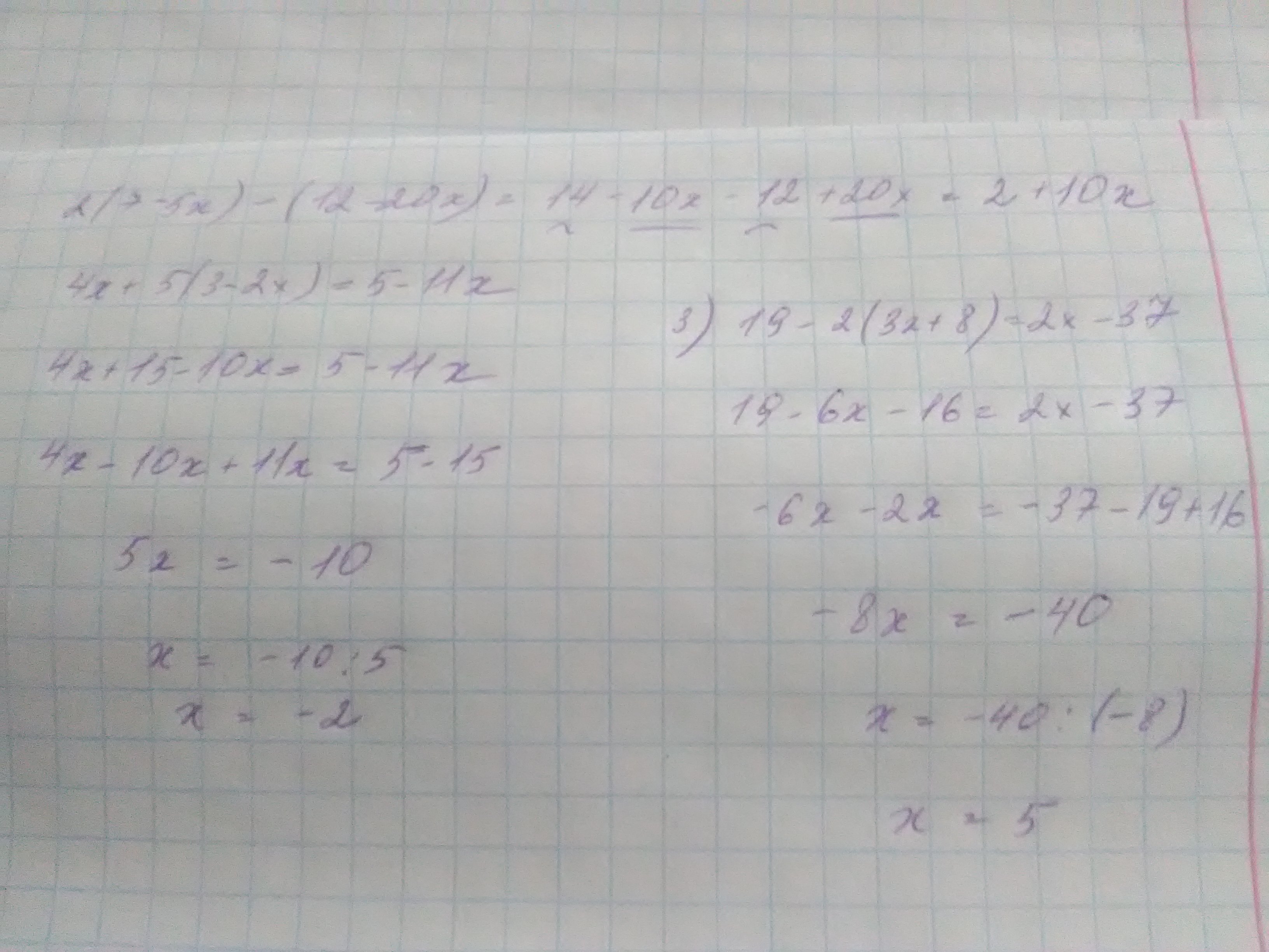 2) Решите уравнение: 4x+5(3-2x)=5-11x
