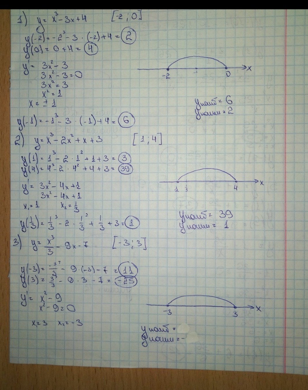 Найдите наибольшее наименьшее значение функции. Проверьте и исправьте что написал неправильно.