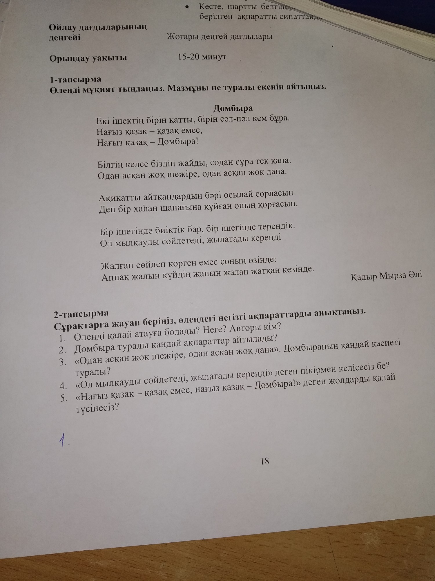 себебы оленде домбыра туралы айтылады,авторы Кадыр Мырза Али