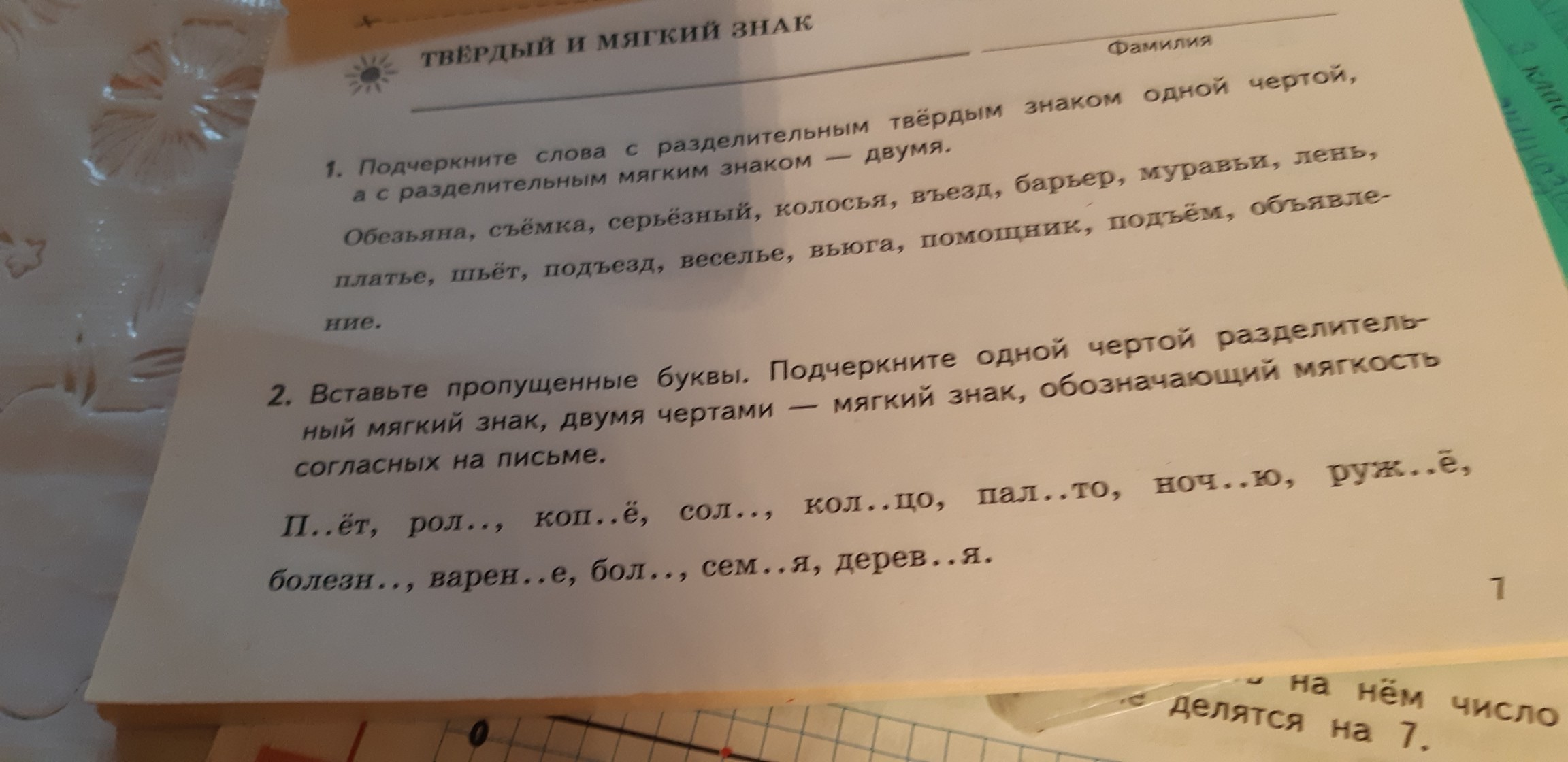 вставьте пропущенные буквы подчеркните одной чертой разделительный мягкий знак двумя чертами мягкий знак обозначающий мягкость согласных на письме