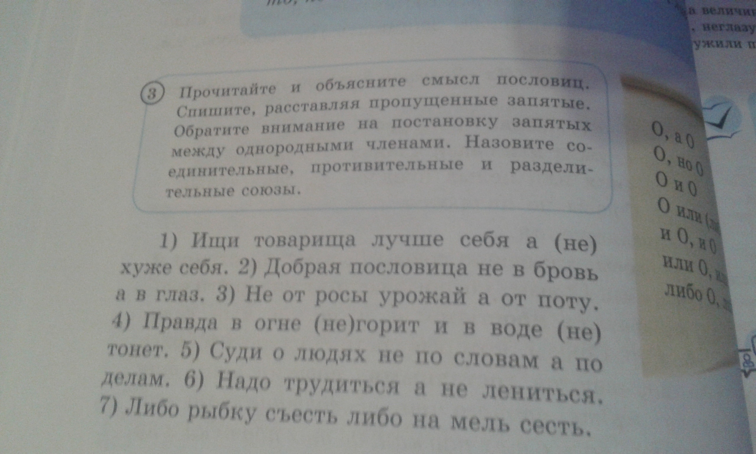 ищи товарища лучше себя, а не хуже себя.добрая пословица не в бровь, а в глаз. не от росы урожай, а от поту. правда в огне не горит и в воде не тонет. суди о людях не по словам, а по делам.надо трудиться, а не лениться. либо рыбку съесть, либо на мель сесть.