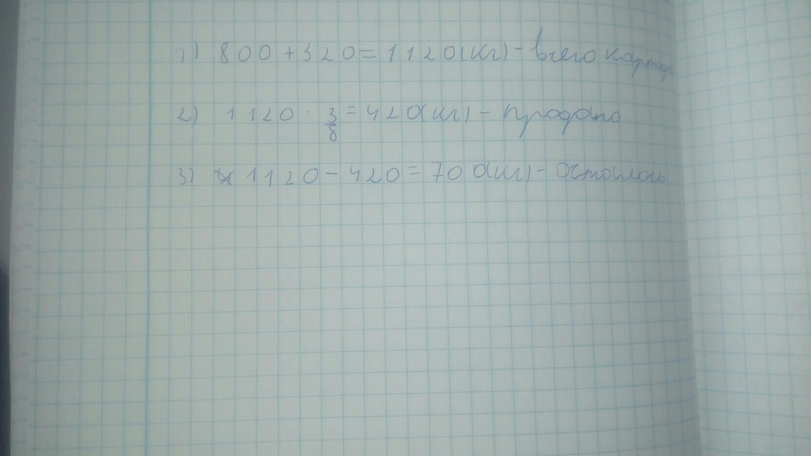 в магазин сначала привезли 4,5 Т затем 320 кг картофеля В первый день продали 3 восьмую часть всего картофеля Сколько килограммов картофеля осталось в магазине