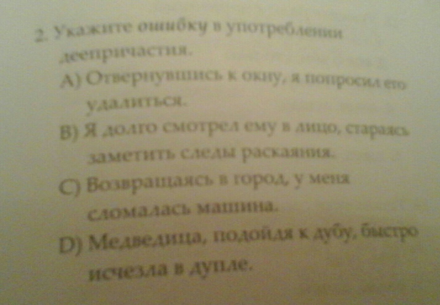 А) окно не может удалиться само. В)Лицо не может рассмотреть следы раскаяния. С) У меня не может сломаться машина она может только сама по себе сломаться. D) Медведица не может исчезнуть в дупле.
