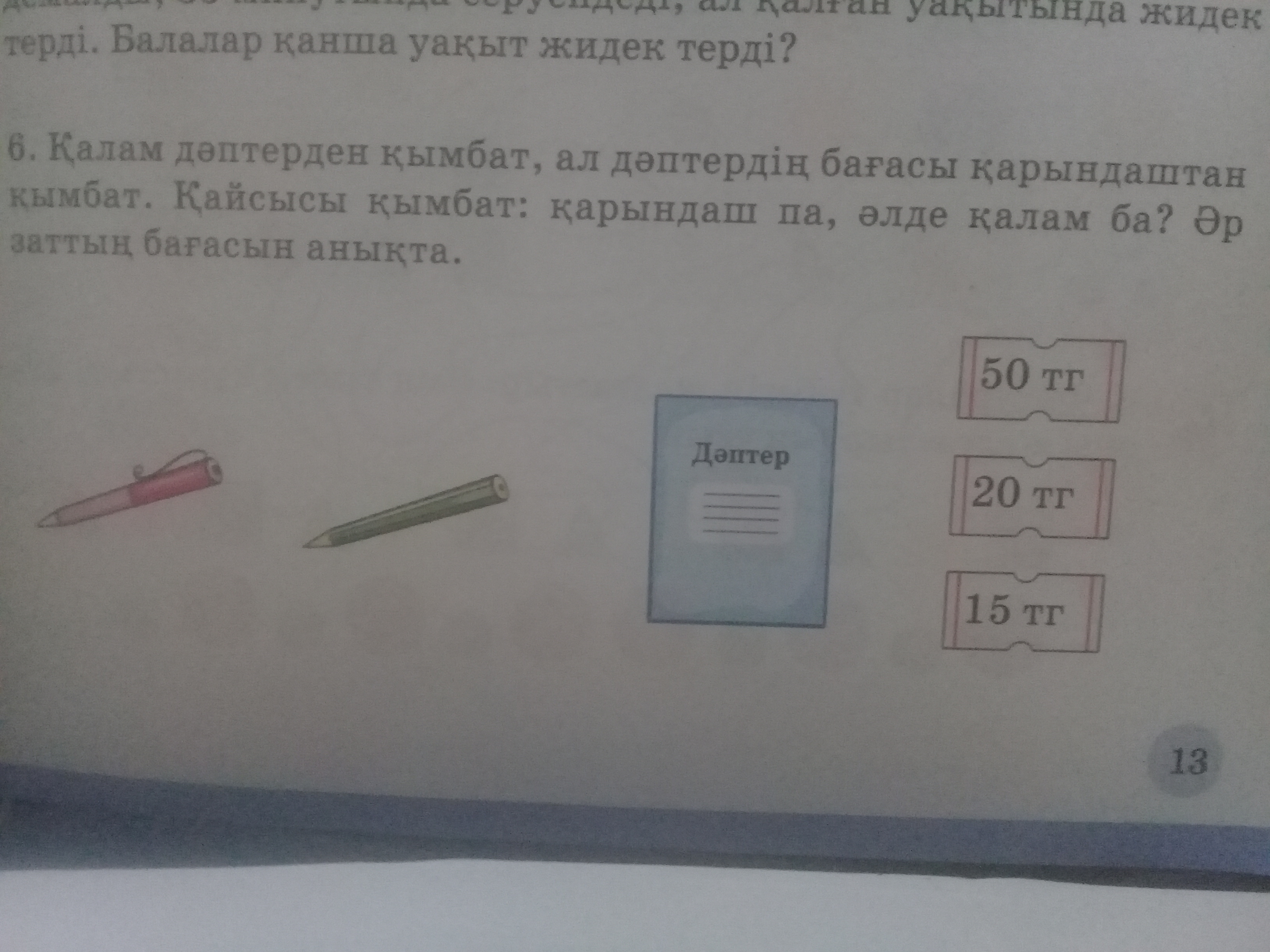 Қалам дəптерден қымбат,ал дəптердің бағасы қарындаштан қымбат.Қайсысы қымбат:қарындаш па,əлде қалам ба?əр заттың бағасын анықта.Өтінем көмектесиниздерш
