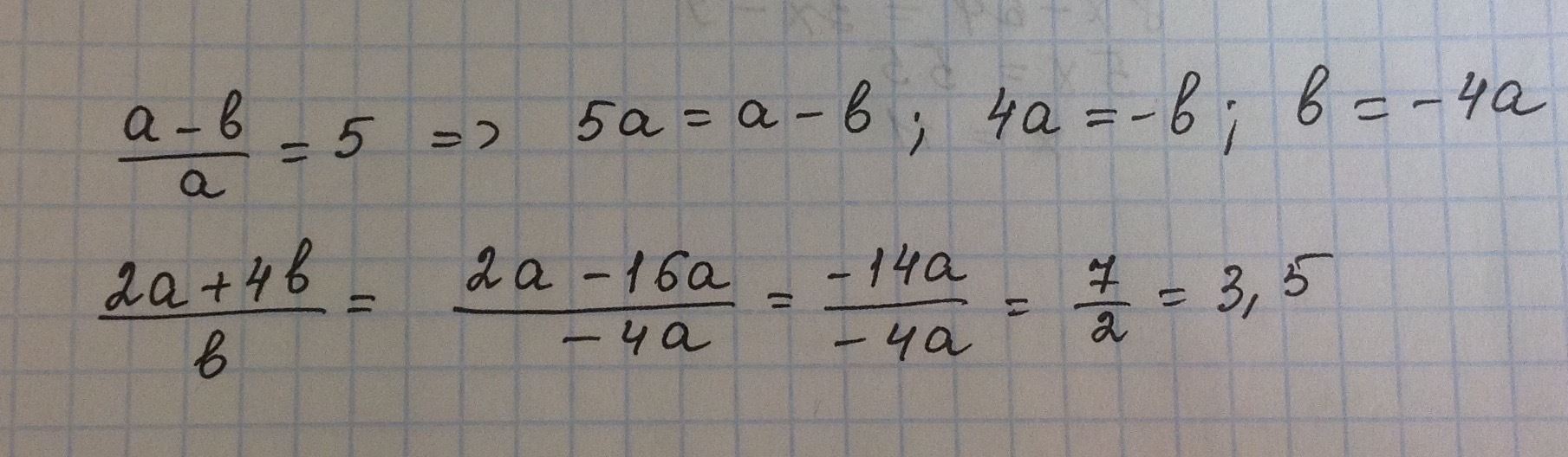 (2a + 4b)/b = 2*a/b + 4b/b = 2*(-1/4) + 4 = -1/2 + 4 = 3 1/2 = 3.5