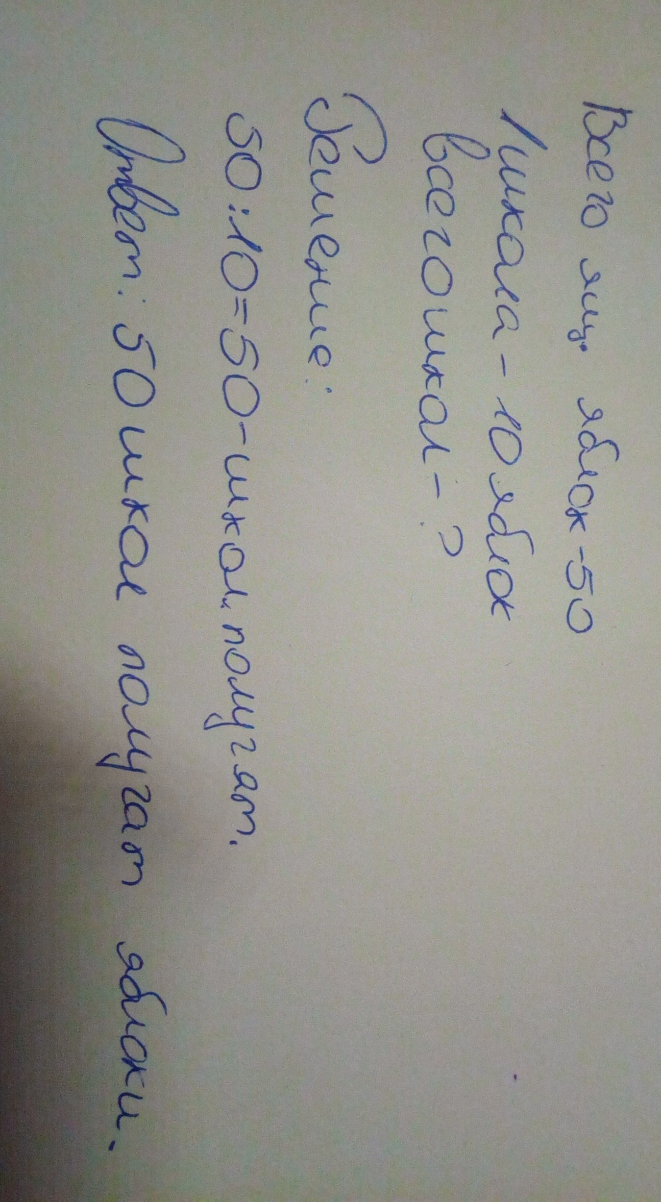 Школьные столовые привезли 50 ящиков яблок если в каждую школу отправят по 10 ящиков то сколько школ получит яблоки