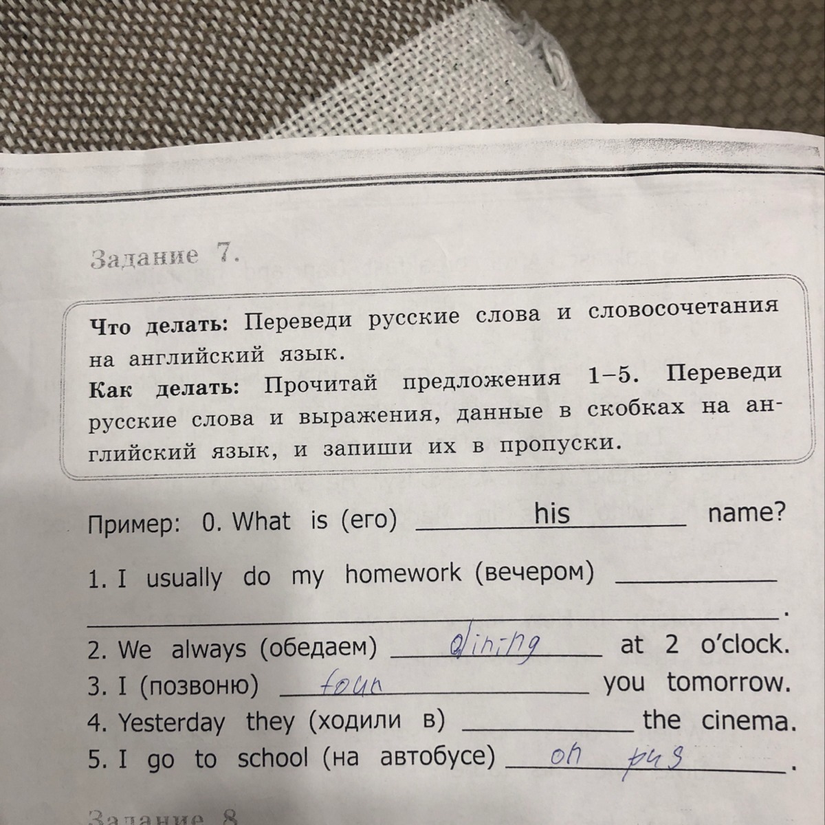 1. in the evening 2. have dinner 3. I'll phone 4. went 5. by bus