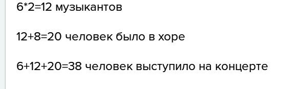 Ответ. 38 человек выступило на концерте.