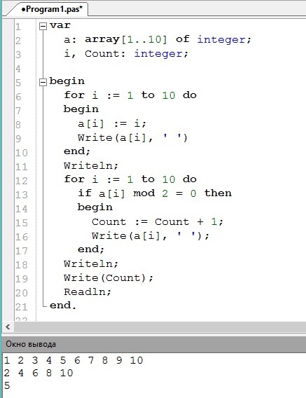 Смотри сюда, нет тут никаких br. В окне вывода внизу первая строка это начальный массив, вторая строка - это четные в массиве, третья строка - количество четных