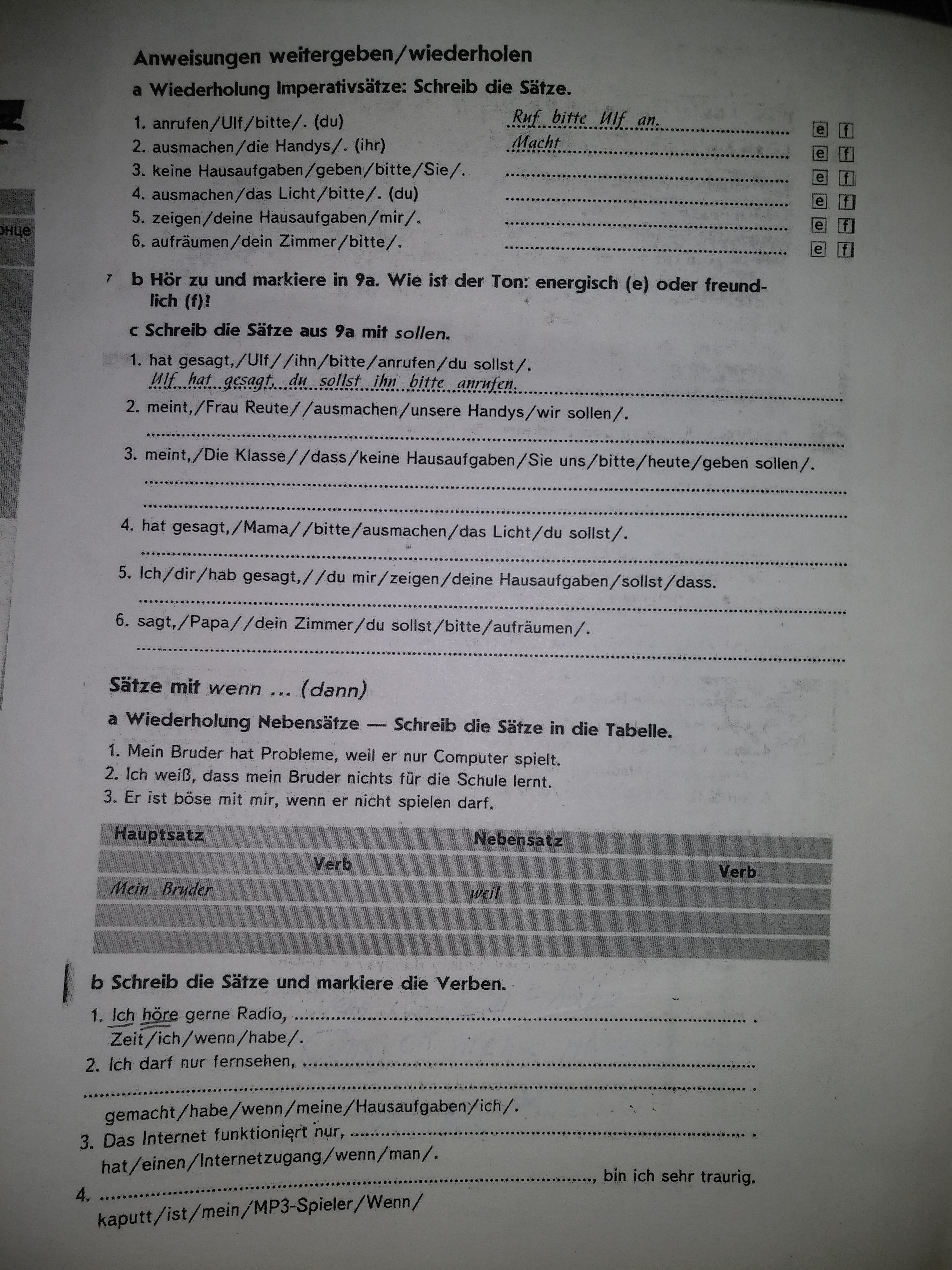 4. Wenn mein MP3-Spieler kaputt ist, bin ich sehr traurig. Verben : ist, bin. Eсли мой плейер сломан, я очень грустный.