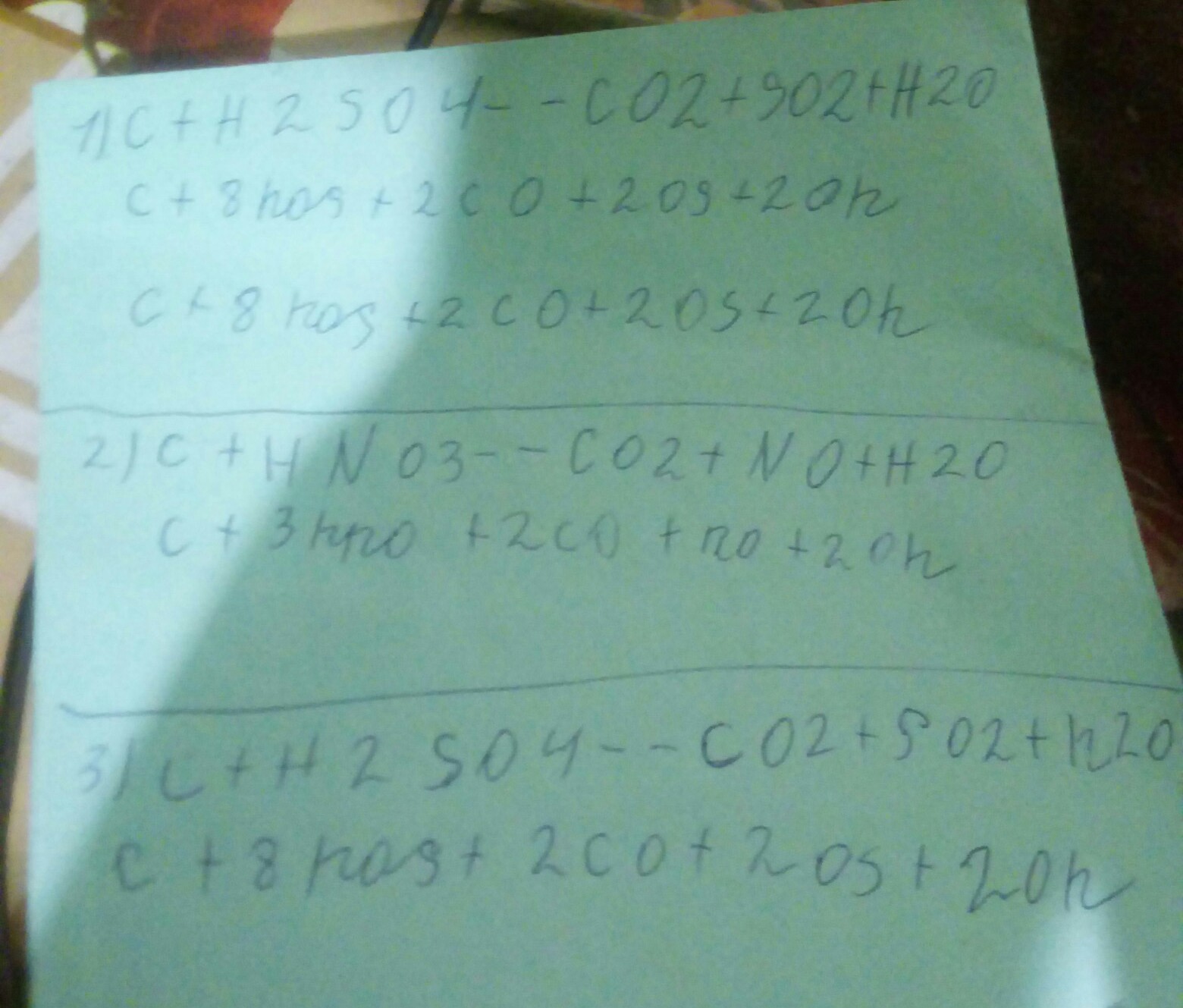 3C + 4 HNO3 = 3CO2 + 4 NO+ 2 H2O