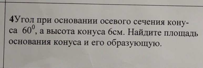 Следовательно, образующая равна АВ =2*2, радиус основания конуса равен АО=