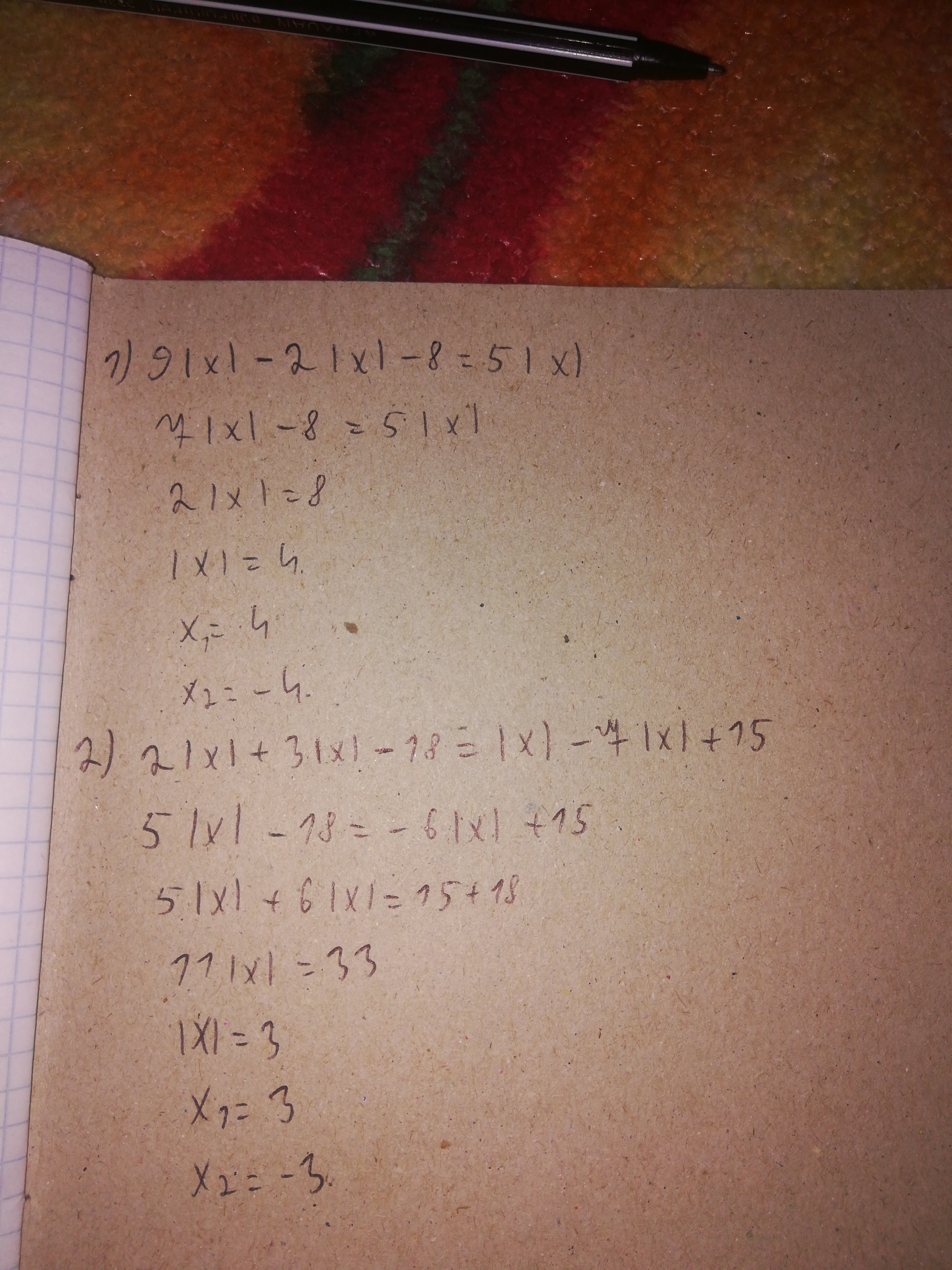 2) 2|x| + 3|x| - 18 = |x| - 7|x| + 15