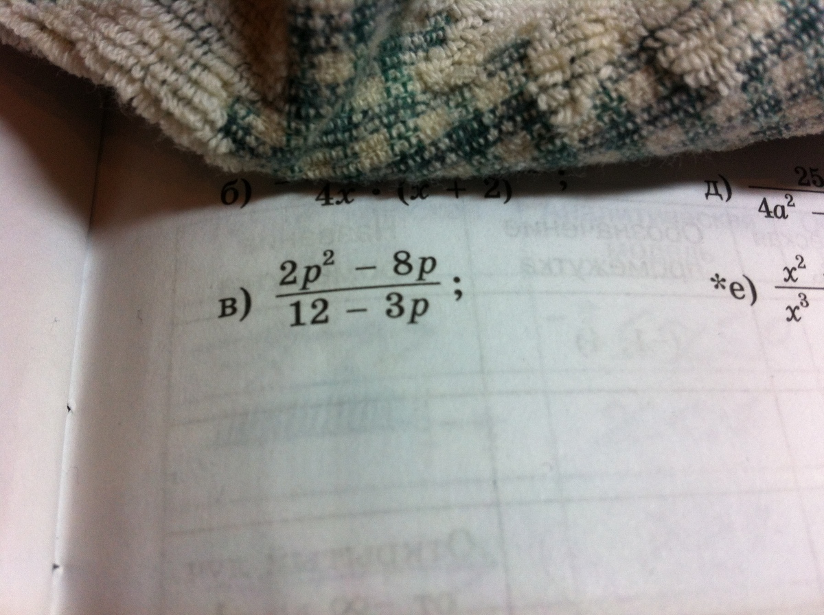 в) 2p(в квадрате*) -8p/12-3p=2p(p-4)/3(4-p)= -2p(p-4)/3(p-4)=-2p/3;