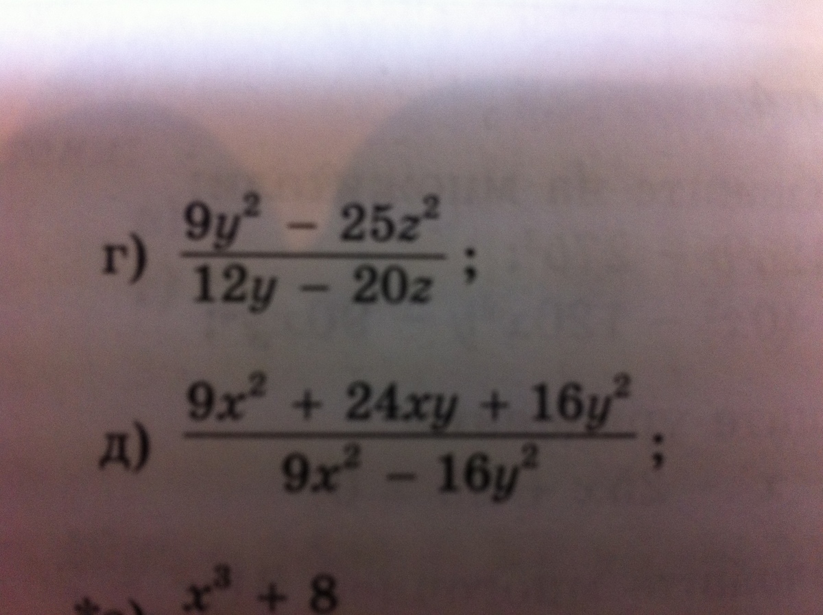 г) 9y2-25z2/12y-20z=(3y-5z)(3y+5z)/4(3y-5z)=3y+5z/4;