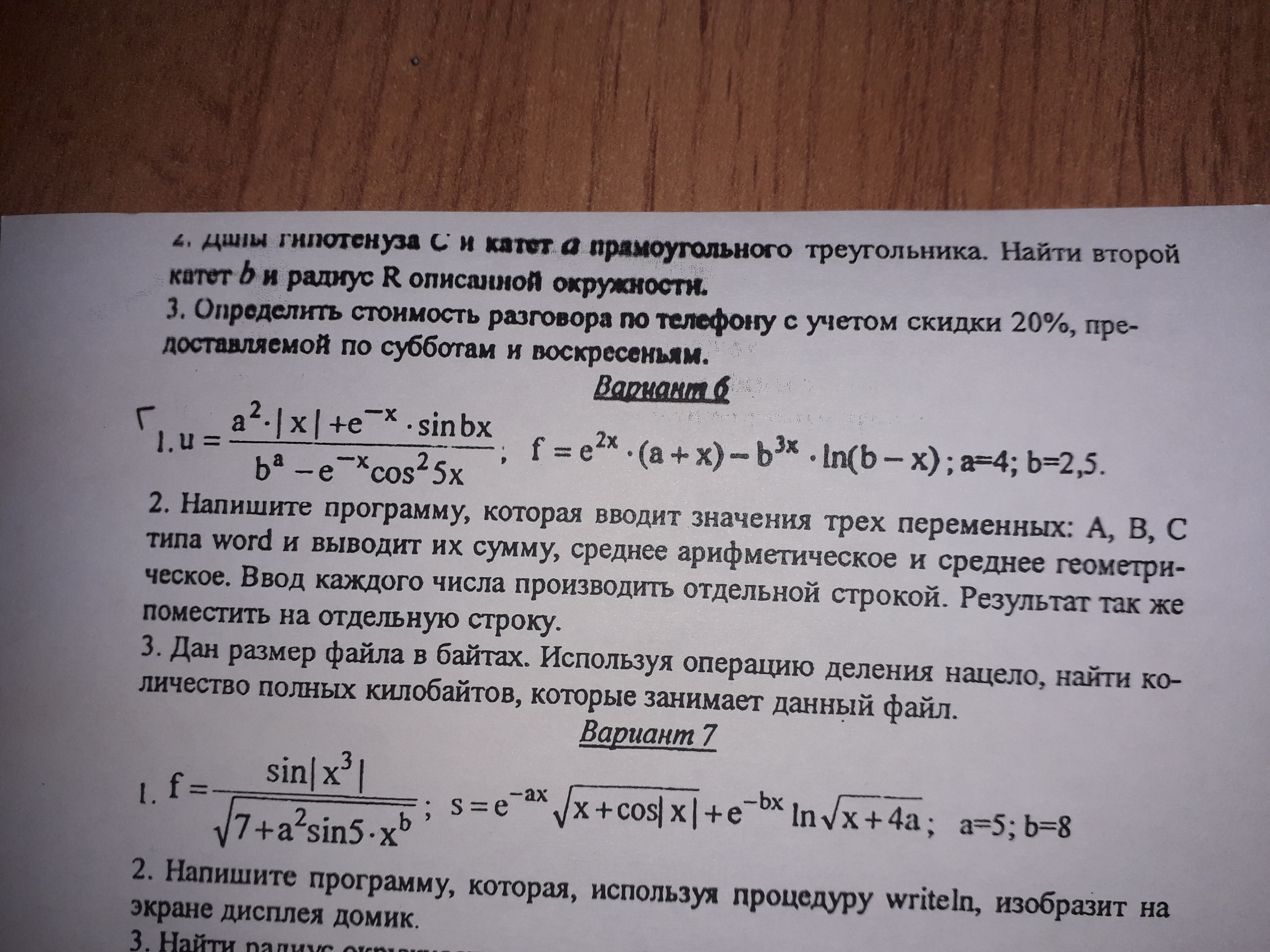 else writeln('Ошибка, невозможно вычислить логарифм, "х" должен быть меньше 2.5!');