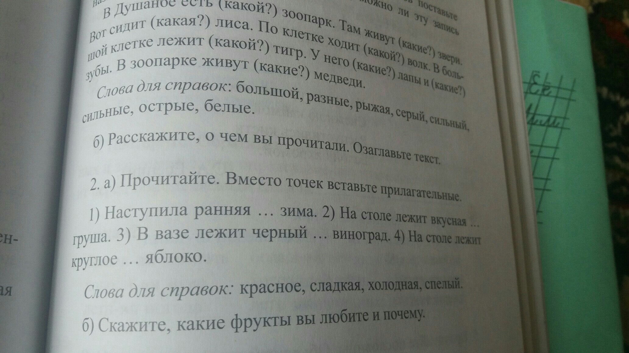 1) Наступила ранняя холодная зима. 2)На столе лежит вкусная сладкая груша.3)На столе лежит черный спелый виноград.4)На столе лежит круглое красное яблоко.