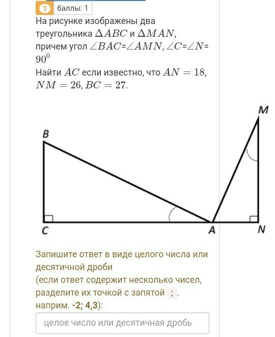 Треугольники ABC и AMN подобные, т.к. углы равны.