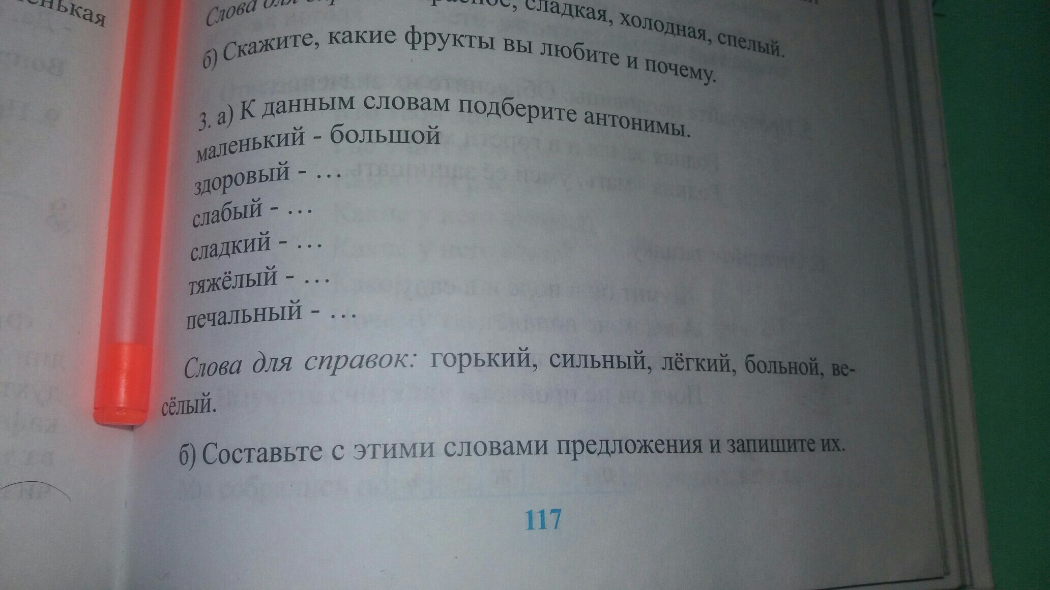 К данным словам подберите антонимы. Маленький-болшой здоровый-.......... задание 3 а) К данным стр 117