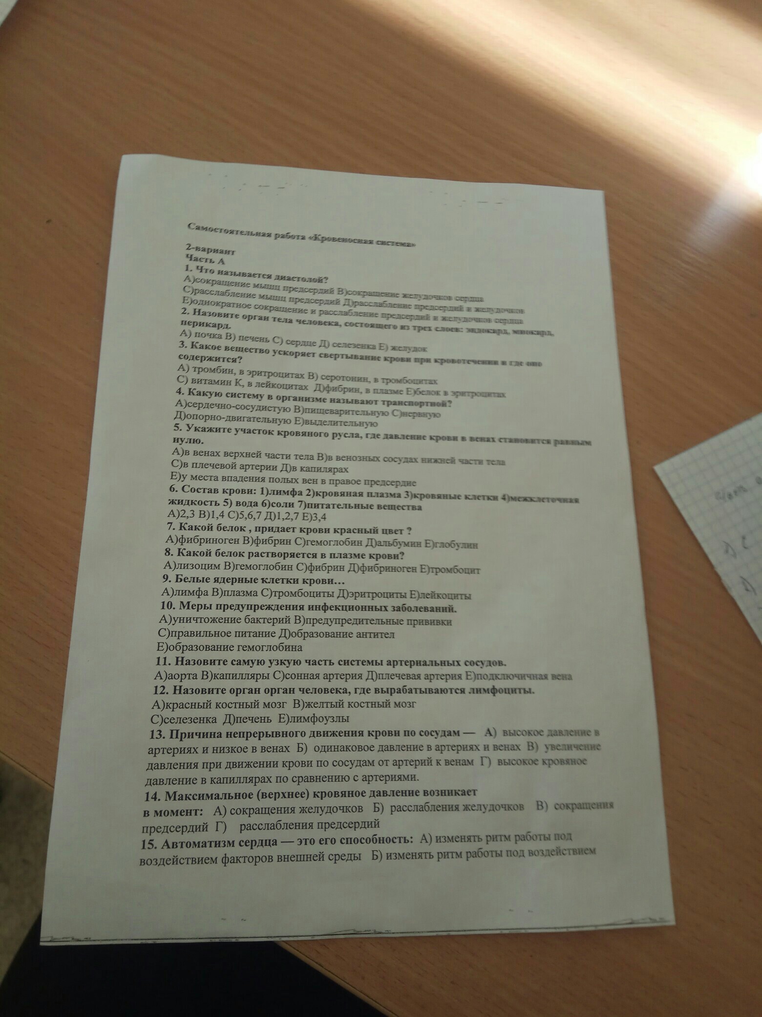 15 на фото не видно правильного ответа ,но под действием сигналов возникающих в самом сердце а вообще Тест составлен крайне некоректно
