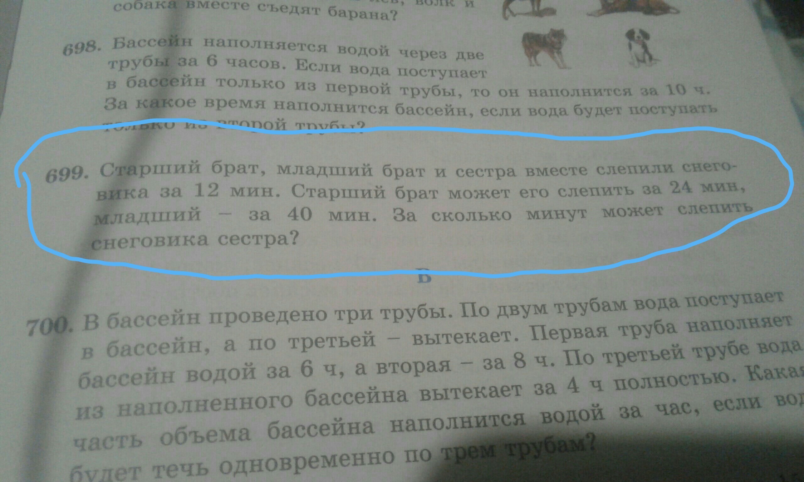 Часть снеговика, которую лепит старший брат за 1 минуту равна 1/24, тоже младший - 1/40, тоже втроем - 1/12. Сестра 1/12 - 1/24 - 1/40 = 20/240 - 10/240 - 6/240 = 4/240 = 1/60.