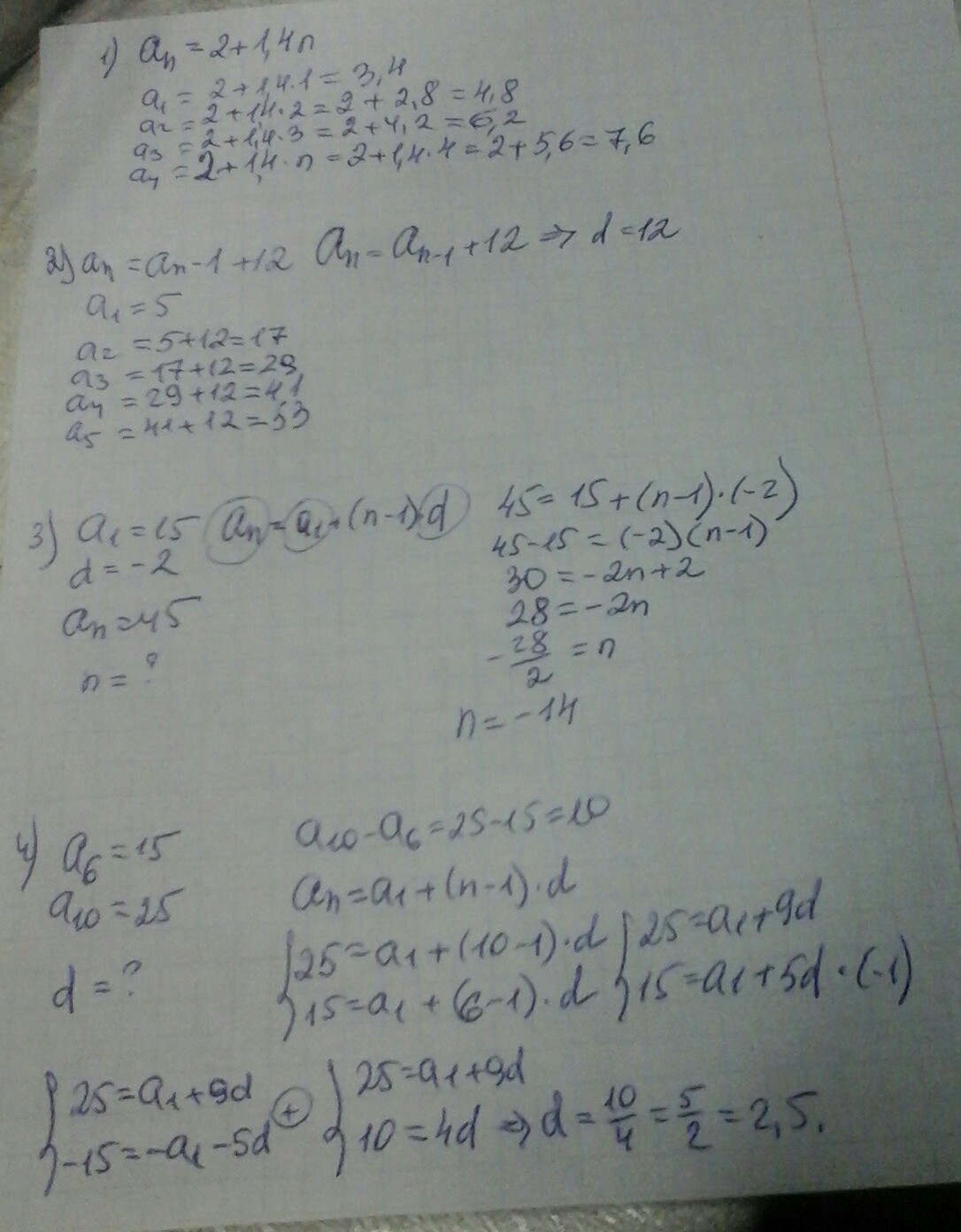 1) an = 2+1,4 ; a1 a2 a3 a4 ?