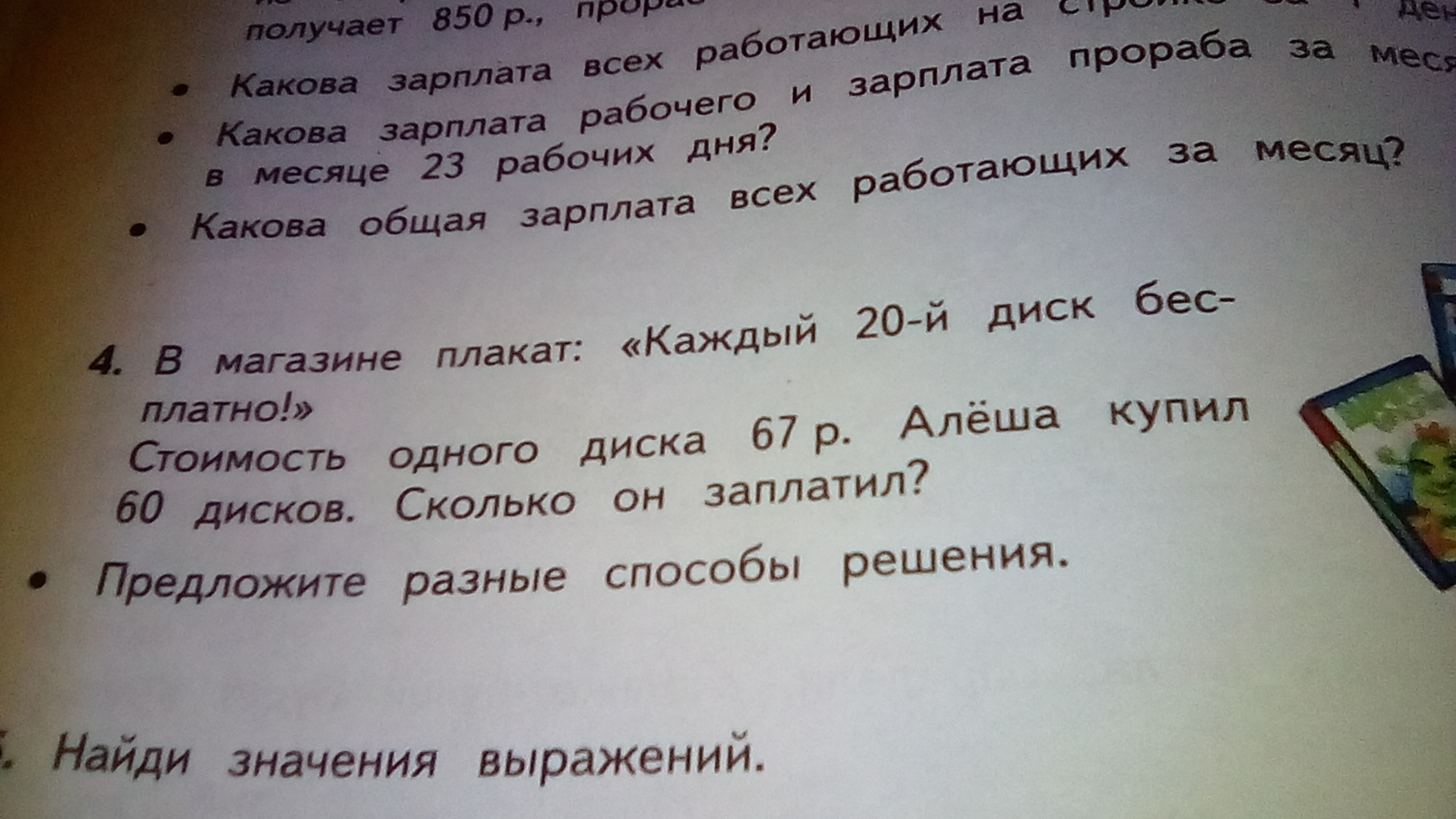 4.В магазине плакат: «Каждый 20-й диск бесплатно!»