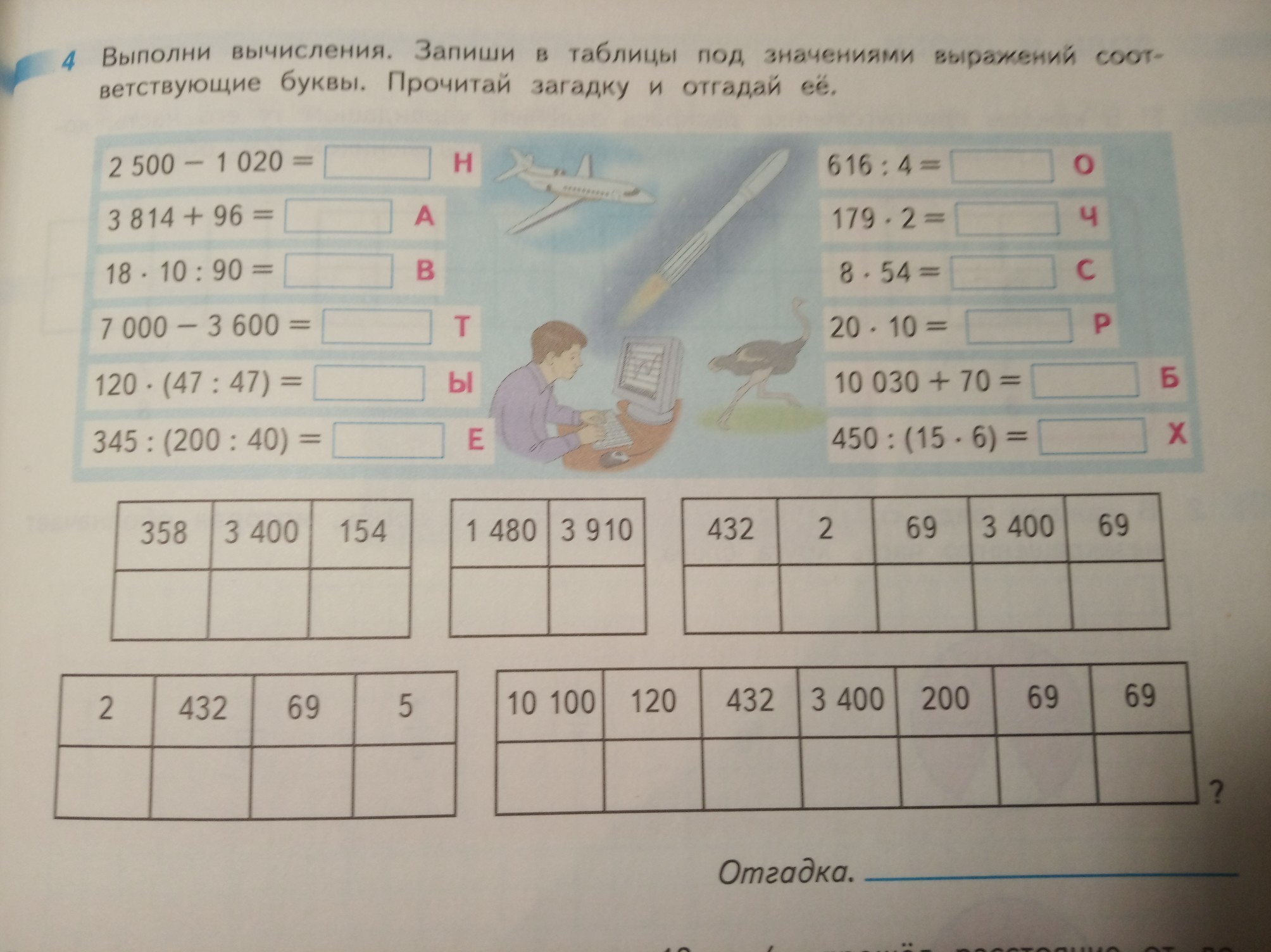 Выполни вычисления Запиши в таблицу под значениями выражений соответствующие буквы Прочитай загадку и Отгадай СРОЧНО