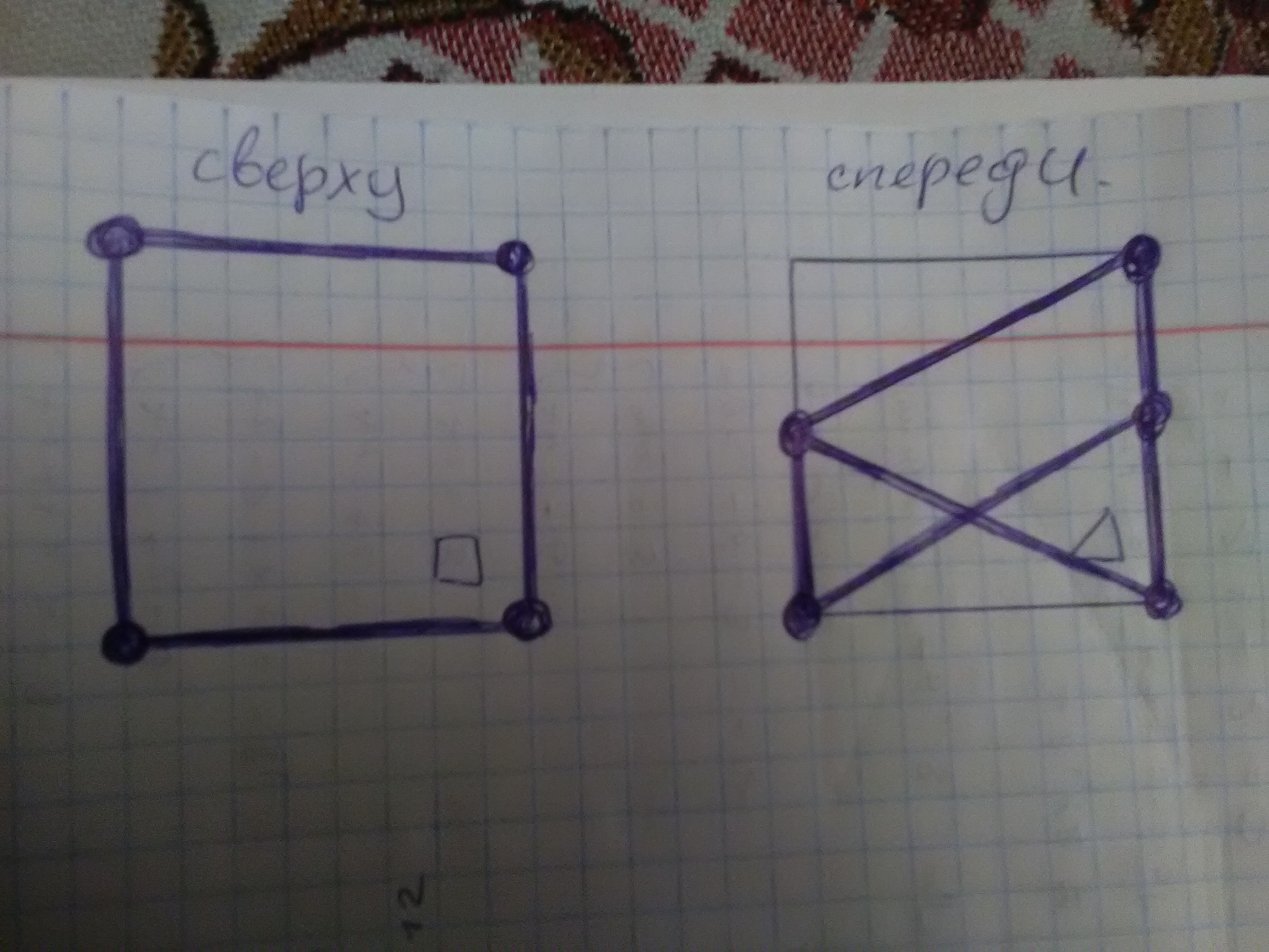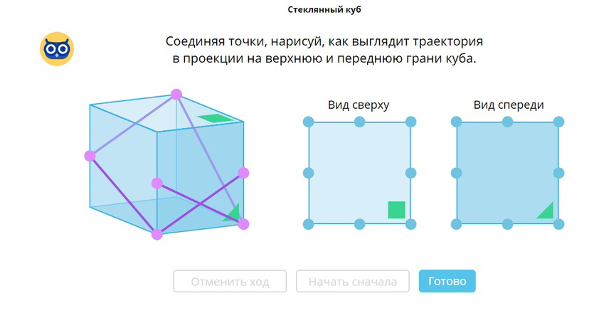 соединяя точки нарисуй как выглядит траектория в проекции на верънюю и переднюю грани куба