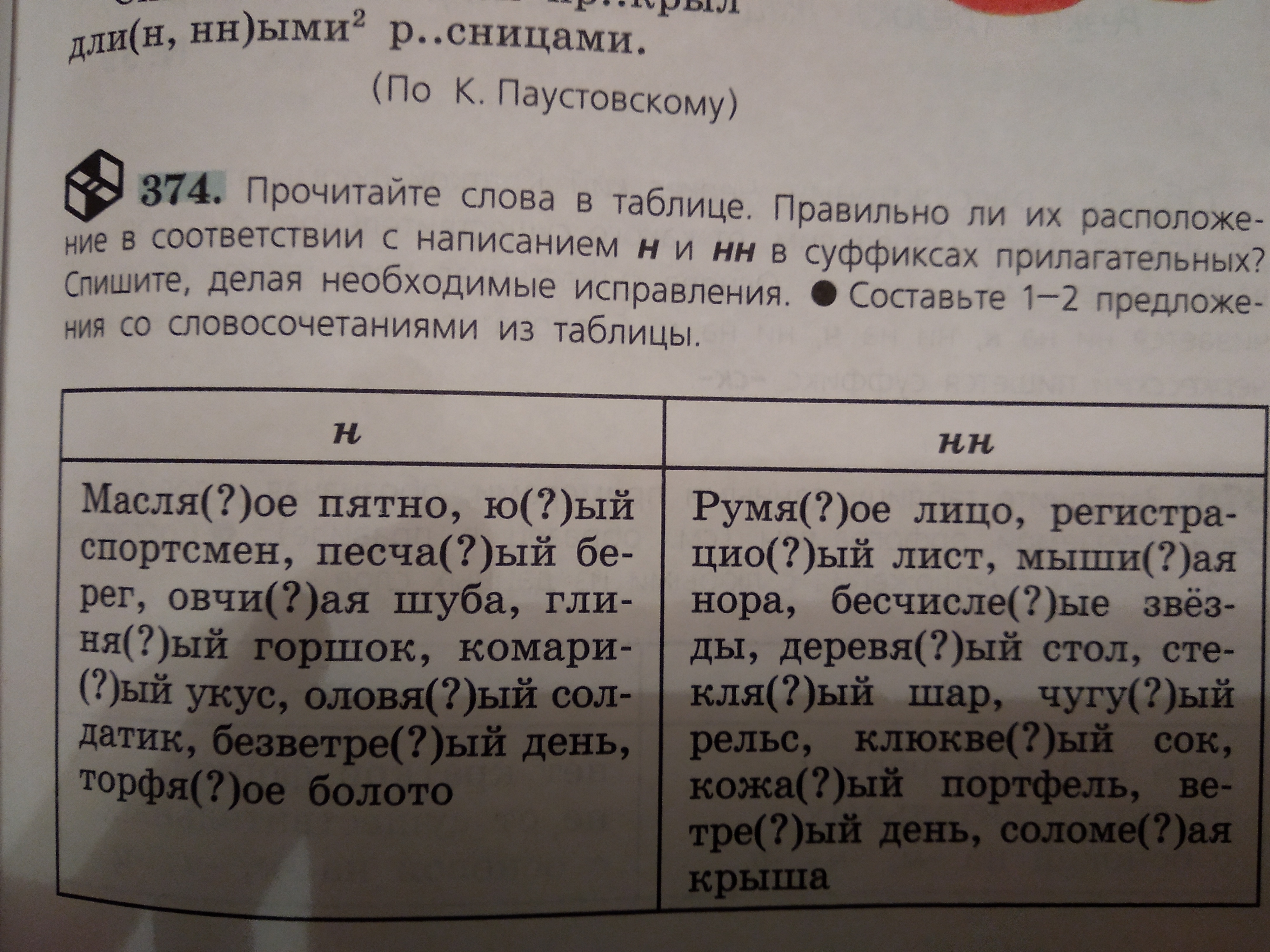 н: Масляное пятно, юный спортсмен, песчаный берег, глиняный горшок, комариный укус, торфяное болото, румяное лицо, мышиная нора, кожаный портфель, ветреный день.