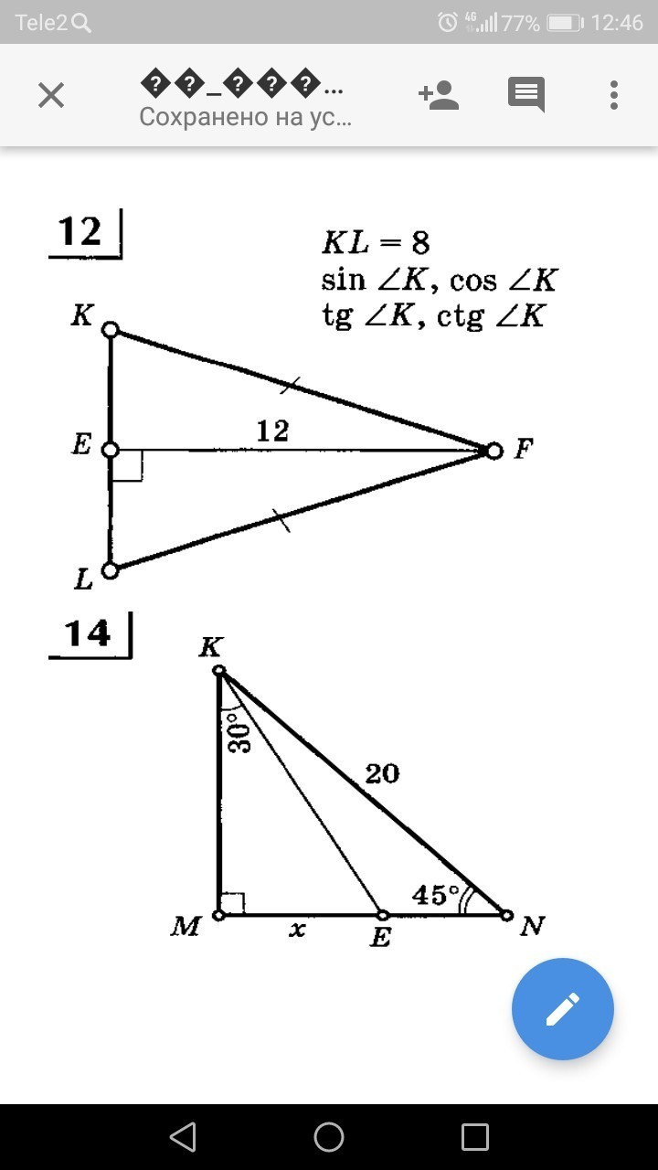 Решение: Так как треугольник MKN прямоугольный и ∠KNE = 45°, то КМ = 20/√2