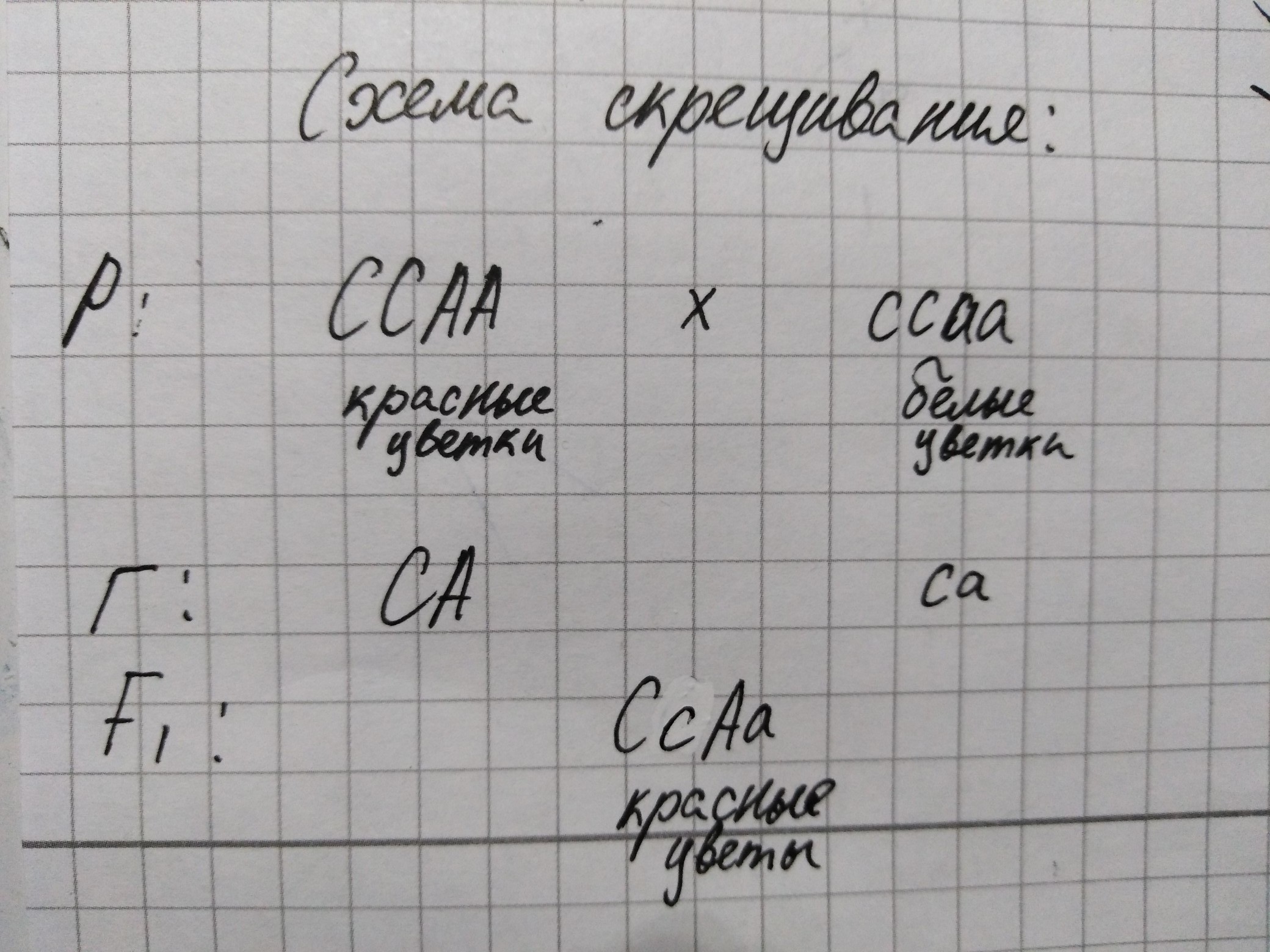 Ответ: генотип исходных лилий с белыми цветами - ссаа, а с красными цветами - ССАА