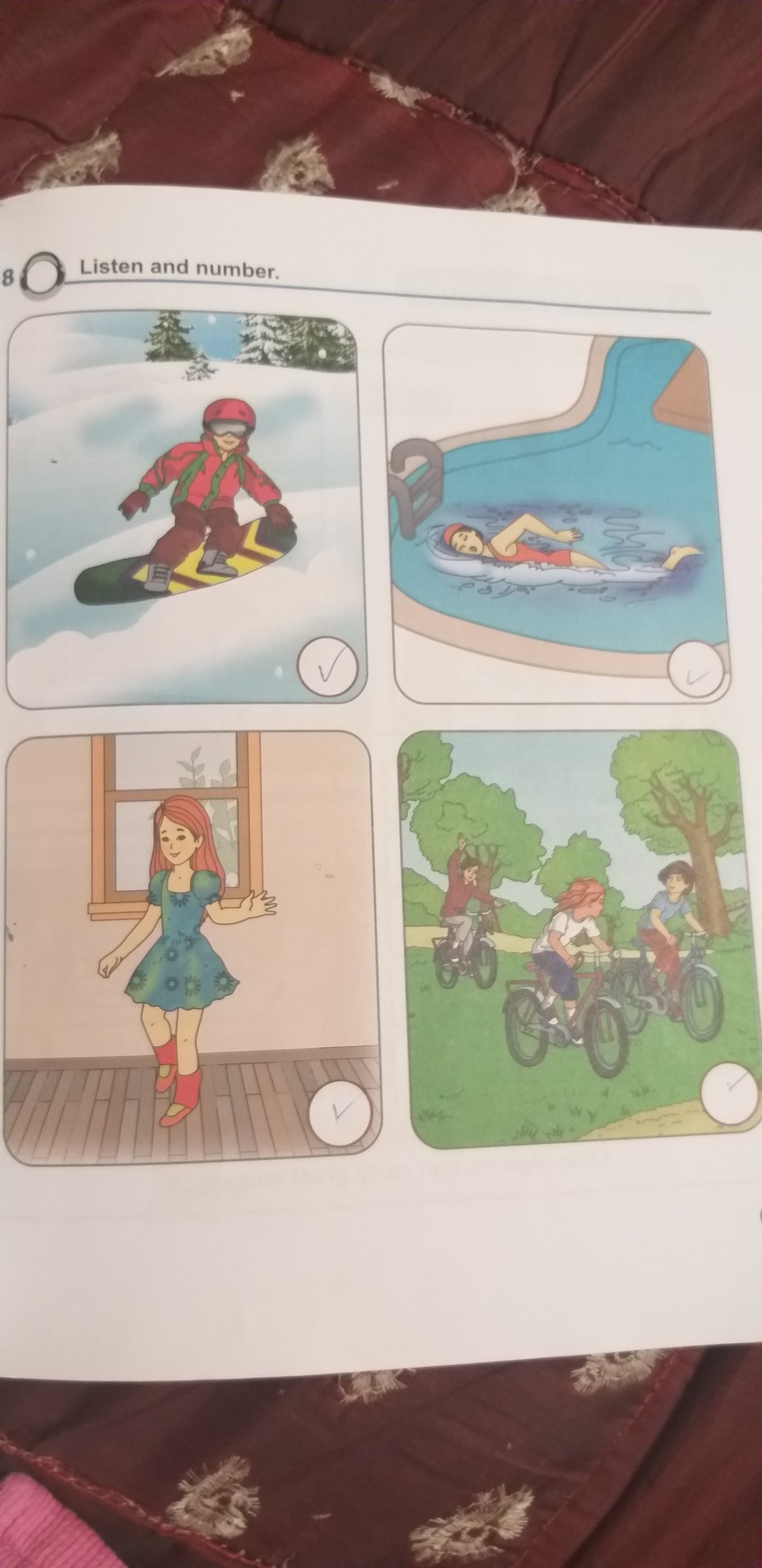Skiing swimming dancing ride bike