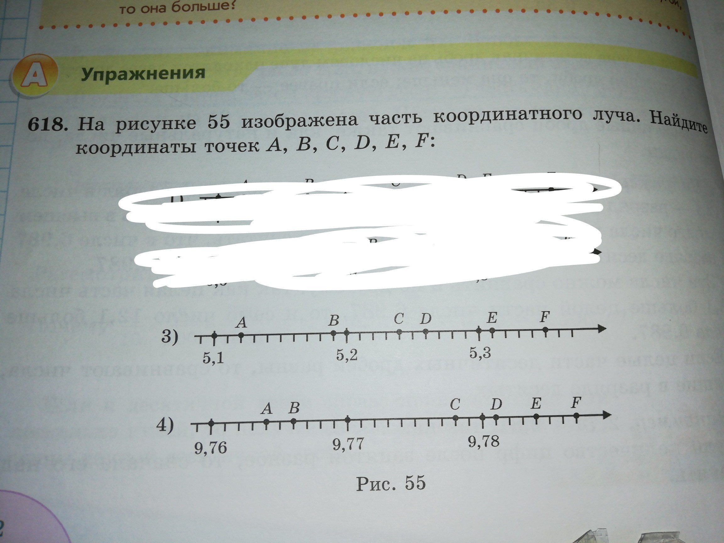 Например, возьмем 3 пункт. 5,1 и 5,2 между ними 10 штрихов. Т.е. 5,11; 5,12; 5,13; 5,14; 5,15; 5,16; 5,17;5,18; 5,19 Дальше посчитать под каким штрихом стоит буква. Если же по-научному. Можно сказать, что это цена деления, и чтобы ее посчитать надо разность двух ближайших чисел разделить на число делений между ними.