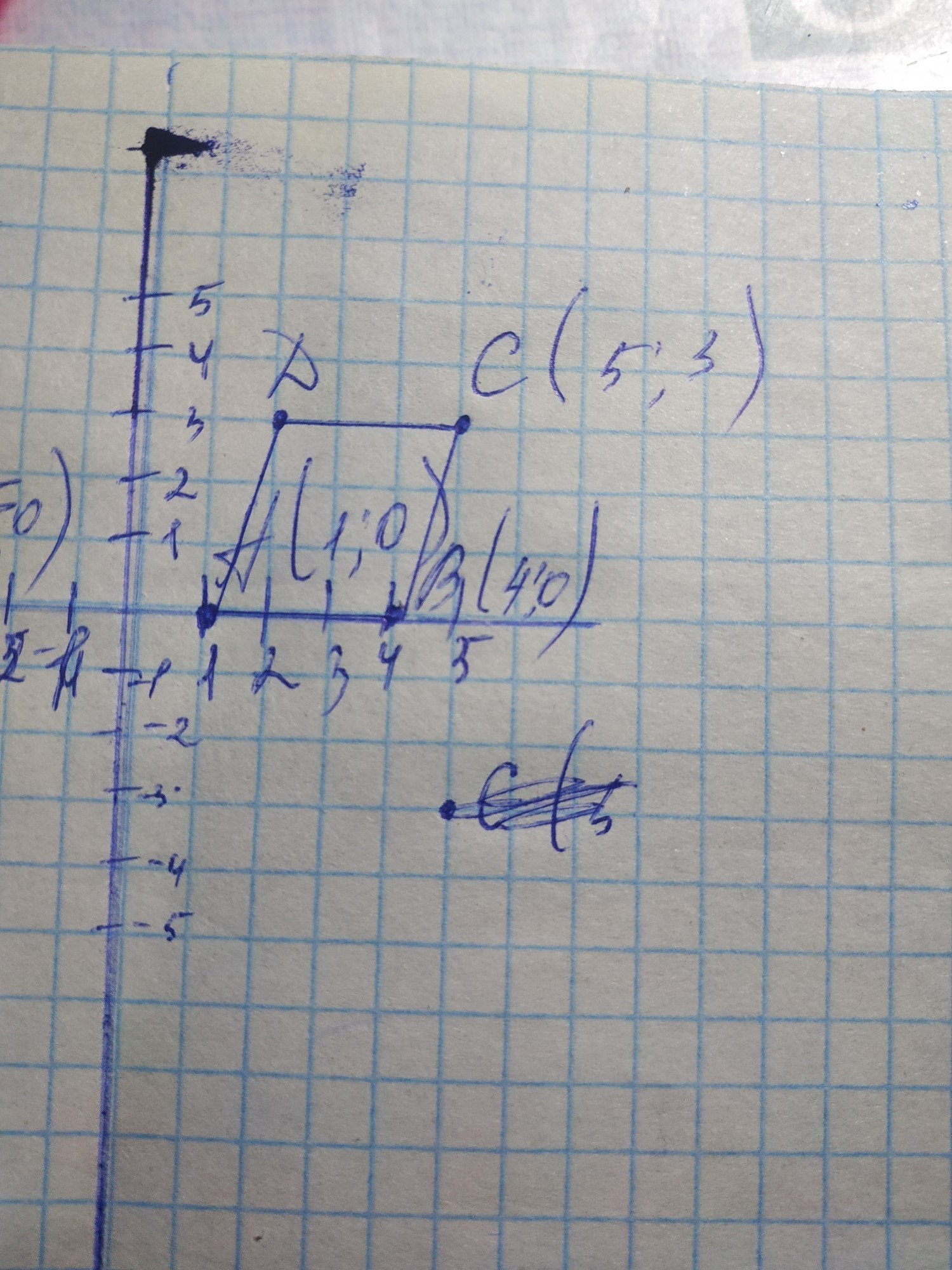 Какая фигура получится, если она проходит через точки: А(1;0) В(4;0) С(5;3) D(2;3)?