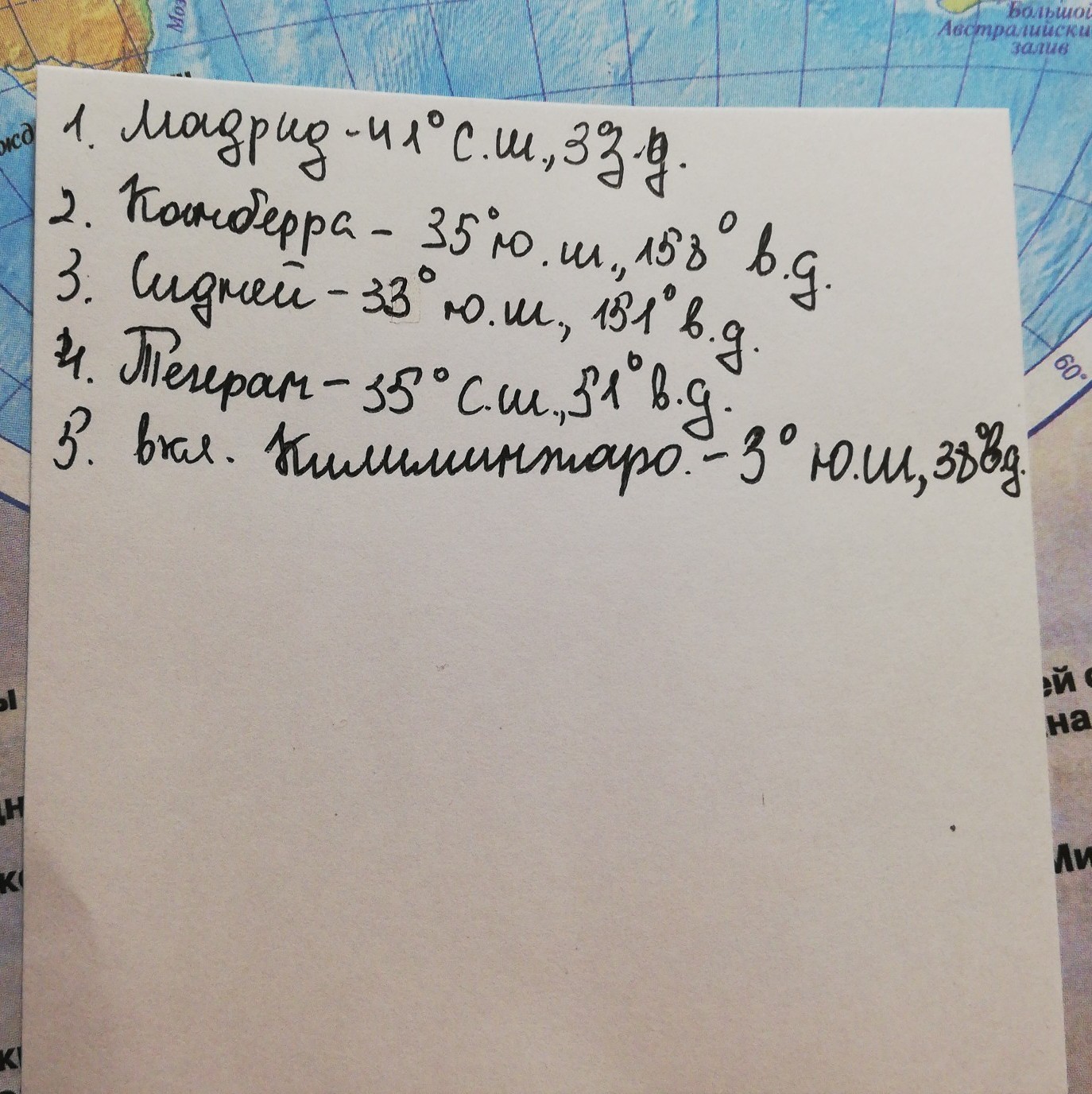 2) 35° ю.ш. 149° в.д.
