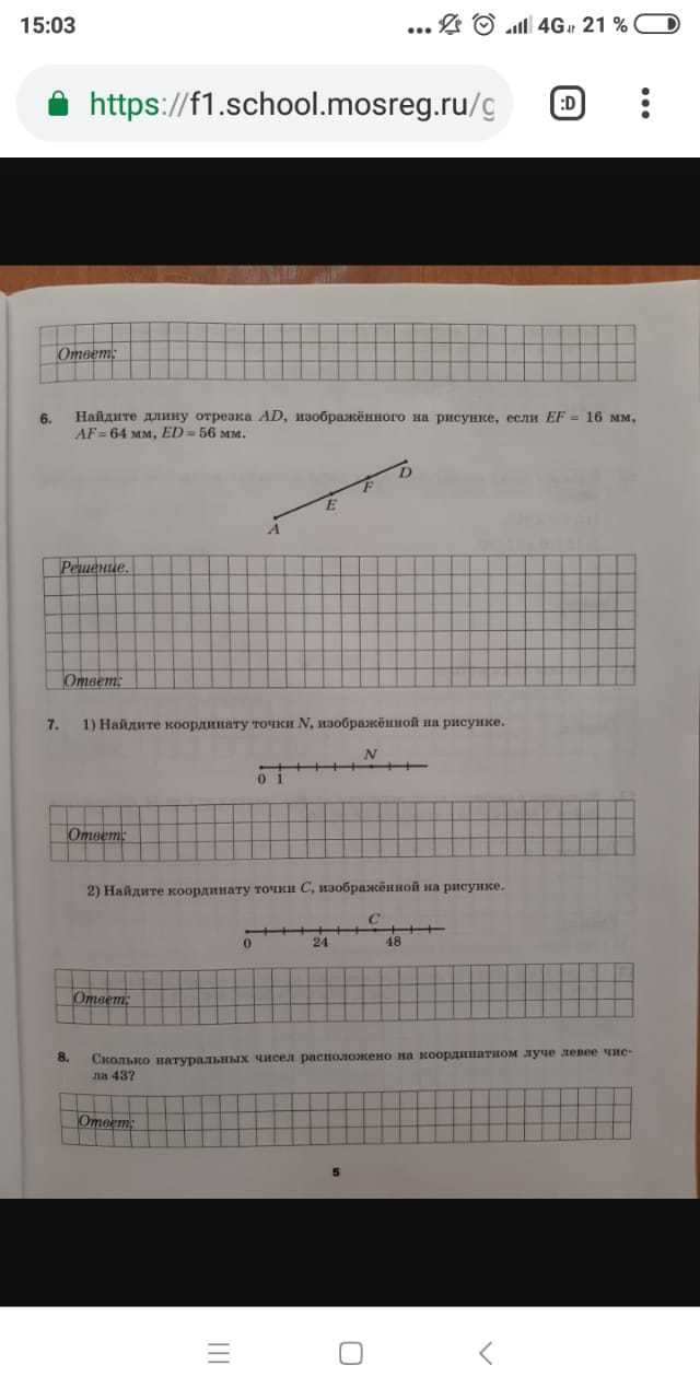 Помогите срочно!Задание:найдите длину отрезка AD,изображенной на рисунке,если EF=16мм,AF=64мм,ED=56мм