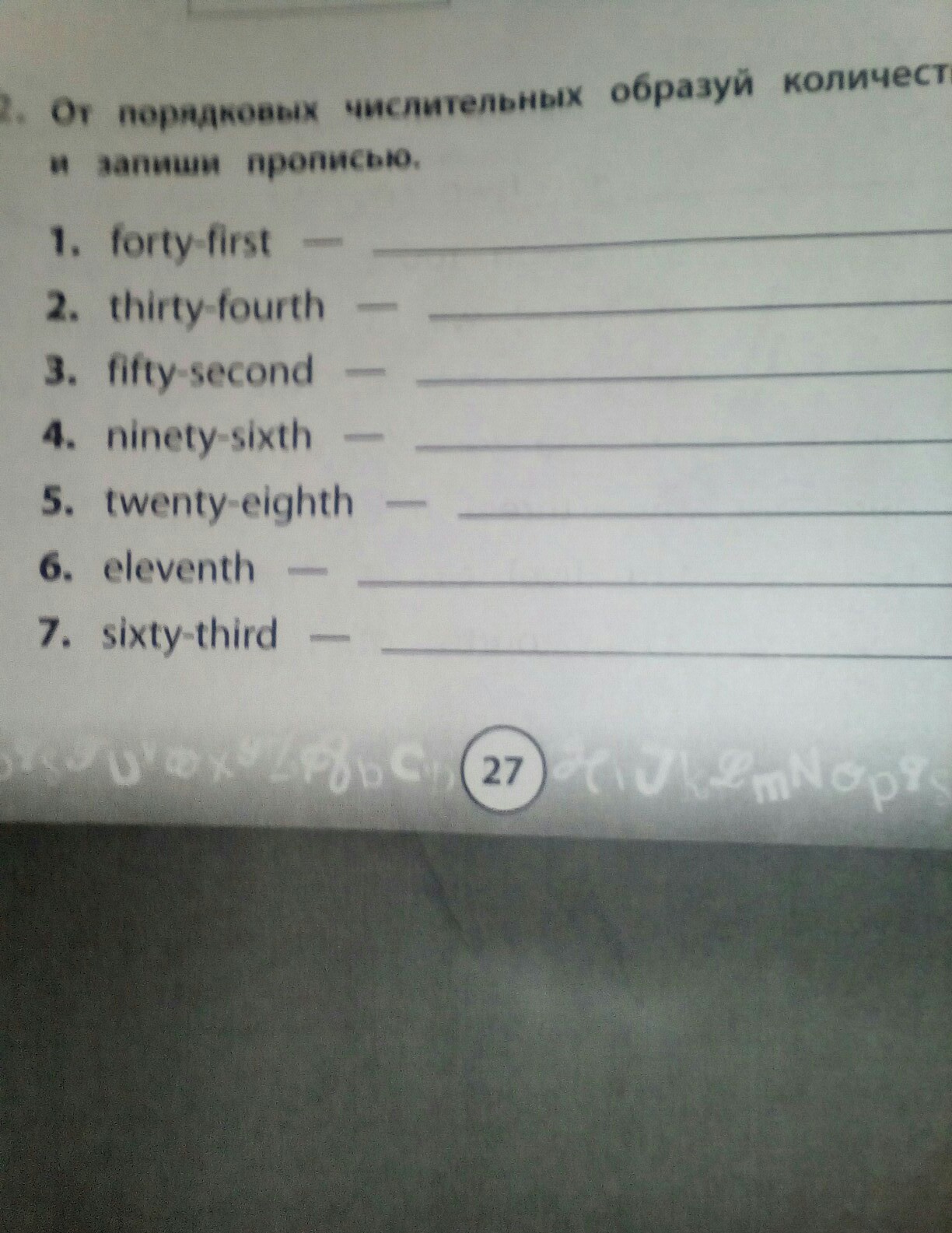 1) forty-one 2) thirty-four 3) fifty-two 4) ninety-six 5) twenty-eight 6) eleven 7) sixty-three