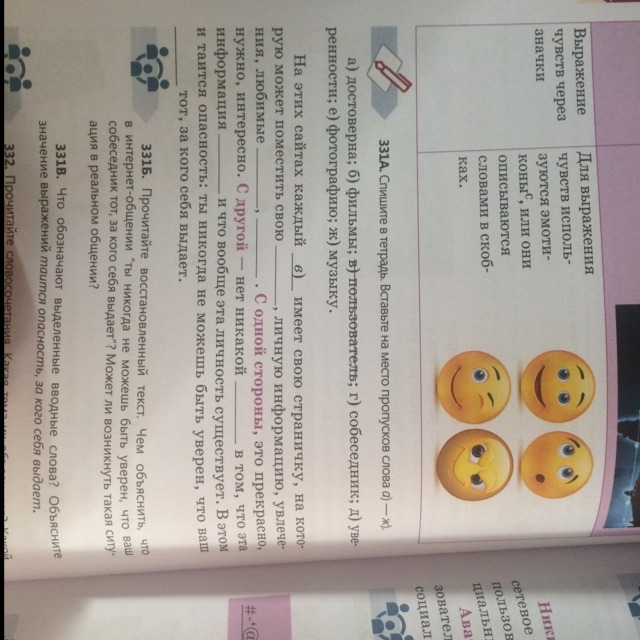 На этих сайтах каждый в) имеет свою страничку, на которую может поместить свою е), личную информацию,увлечение, любимые б), ж). С одной стороны, это прекрасно, нужно, интересно. С другой- нет никакой д) в том, что эта информация а) и что вообще эта личность существует. В том и таится опасность: ты никогда не можешь быть уверен, что ваш г) то, за кого себя выдает