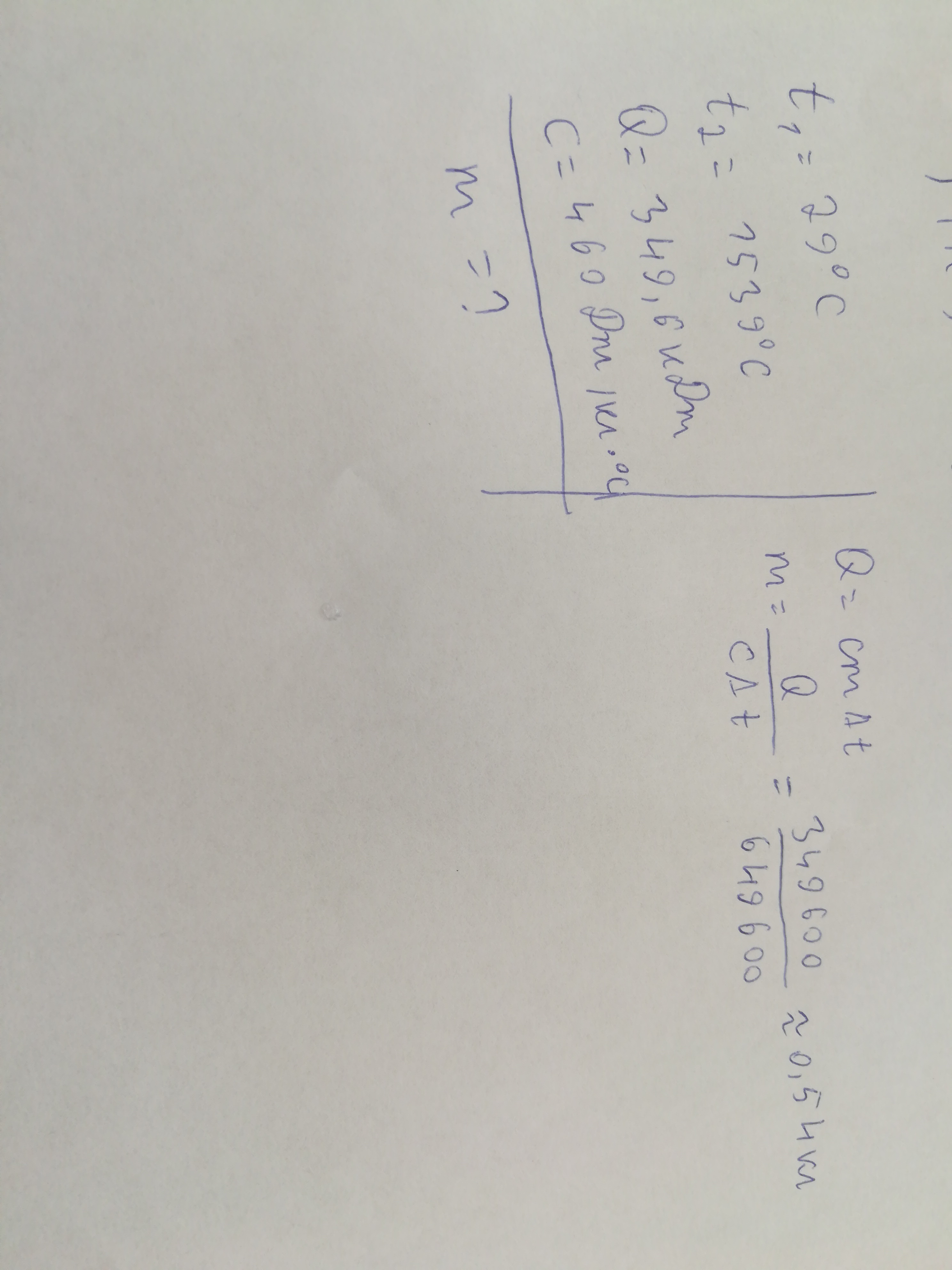Для нагревания железной заготовки от 29 до 1539 °С затратили кол-во теплоты 349,6 кдж. Чему равнп масса заготовки? Удельная теплоемкость железа 460 дж/(кг•°С)