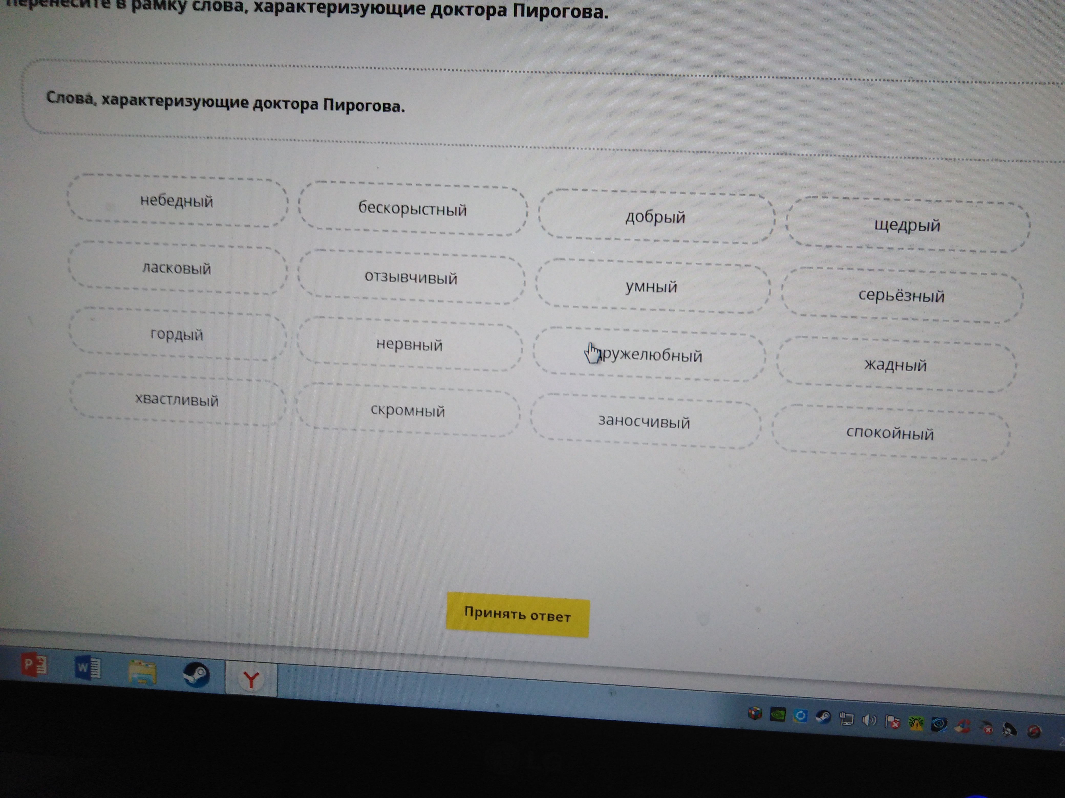 Бескорыстный, добрый, щедрый, ласковый, отзывчивый, умный, серьезный, дружелюбный, скромный, спокойный.