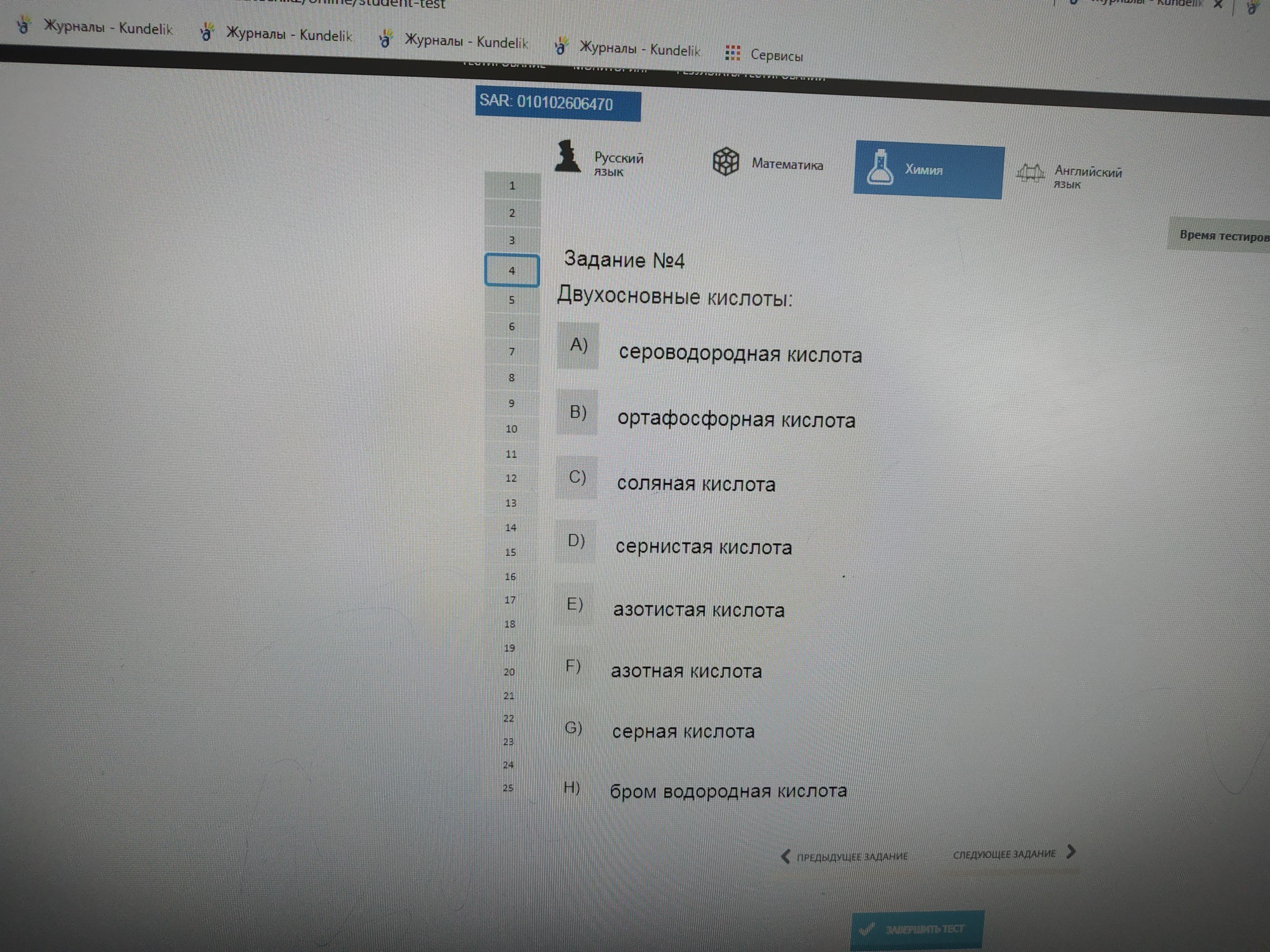 Двухосновные кислоты - в составе 2 атома водорода: H2S, H2SO3, H2SO4