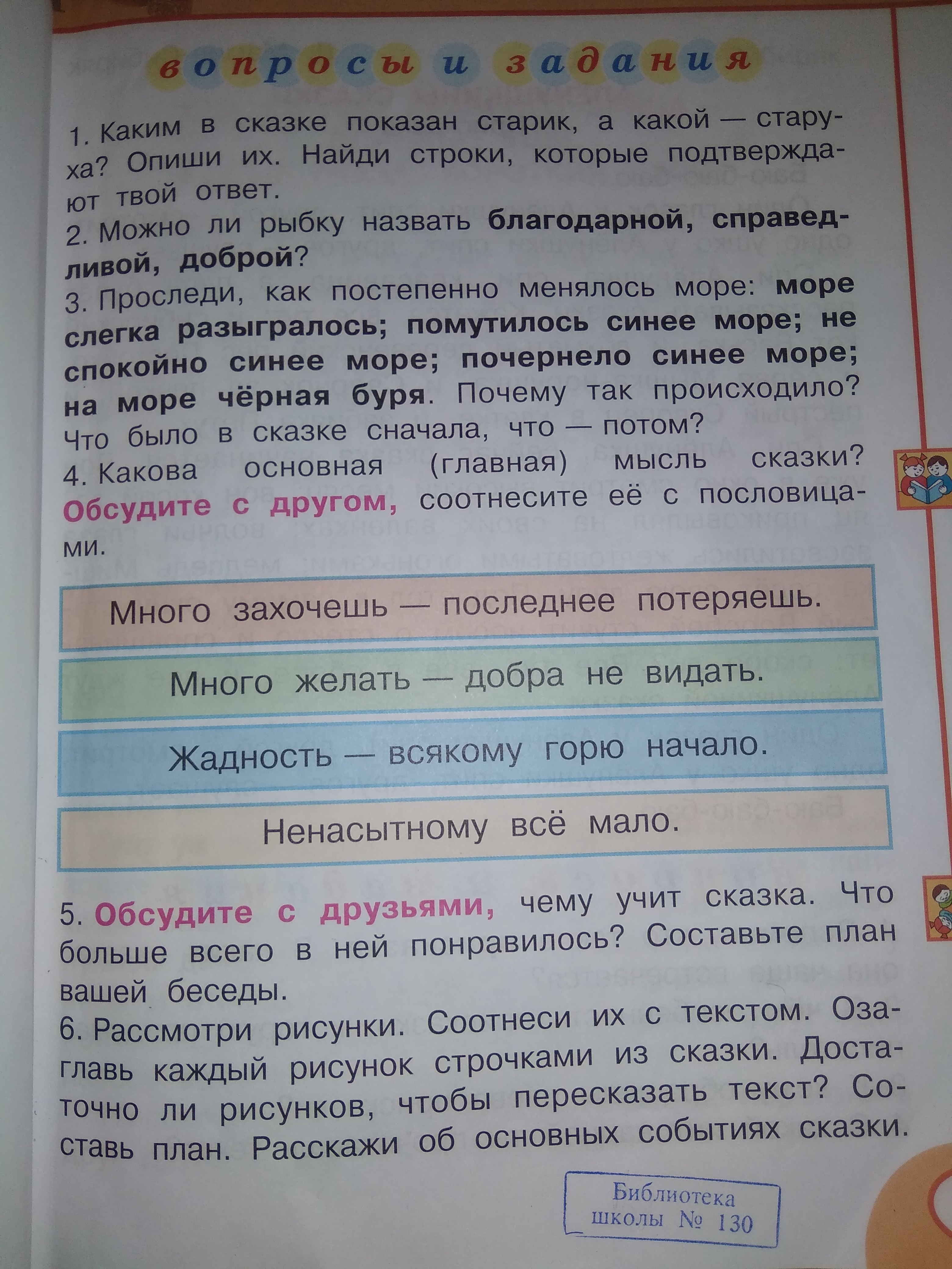 5) В этой сказке можно найти много чего полезного для разных людей. Для стариков можно сделать вывод - не иди на поводу у старухи, либо - знай меру в исполнении желаний супруги, либо - не эксплуатируй удачу...