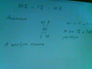 Рассчитайте по диагональной схеме в каком соотношении следует смешать растворы 20% и 3 % для получения 10%