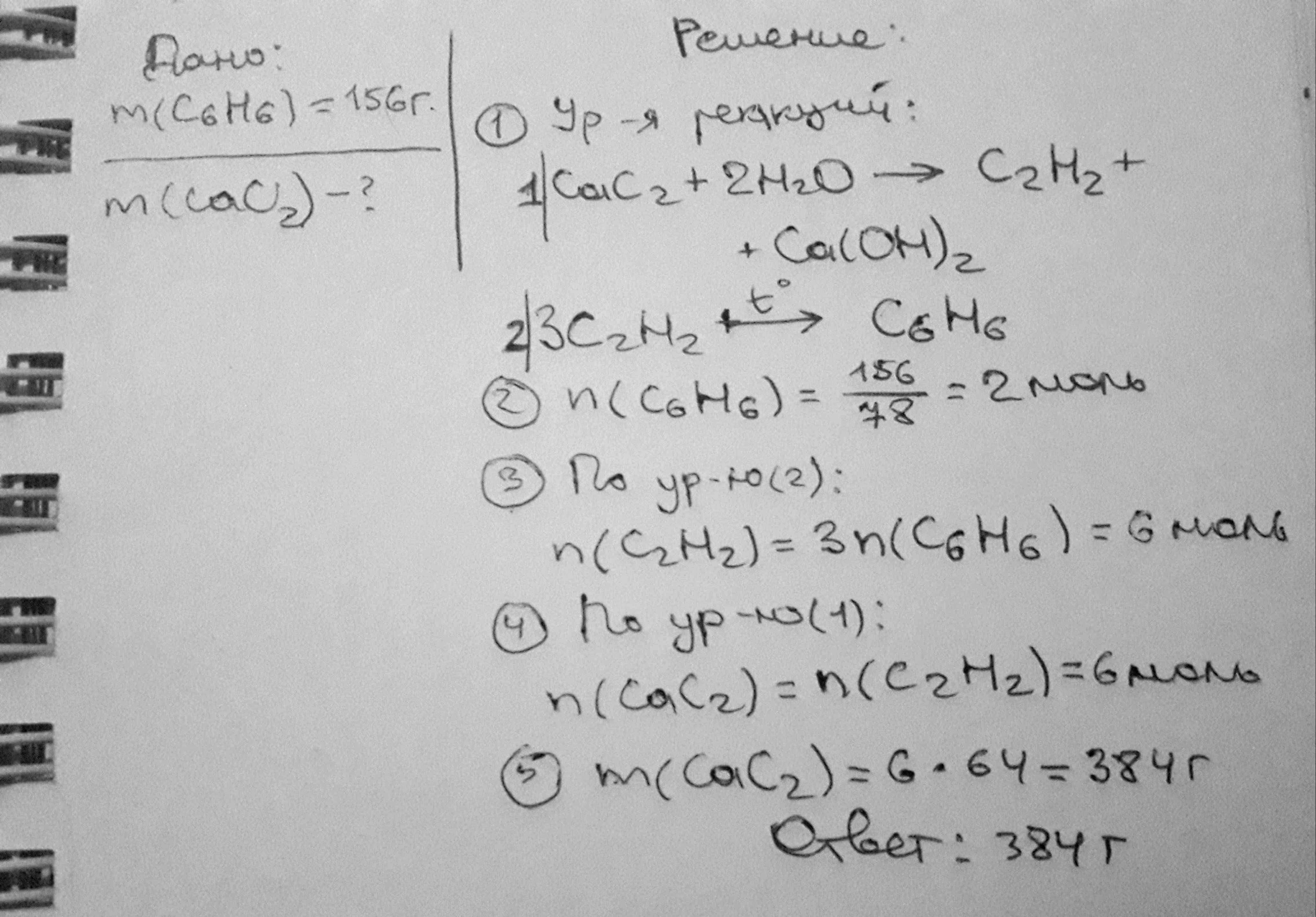 Какая масса карбида кальция потребуется для получения 156 г бензола( выход принять за 100%)